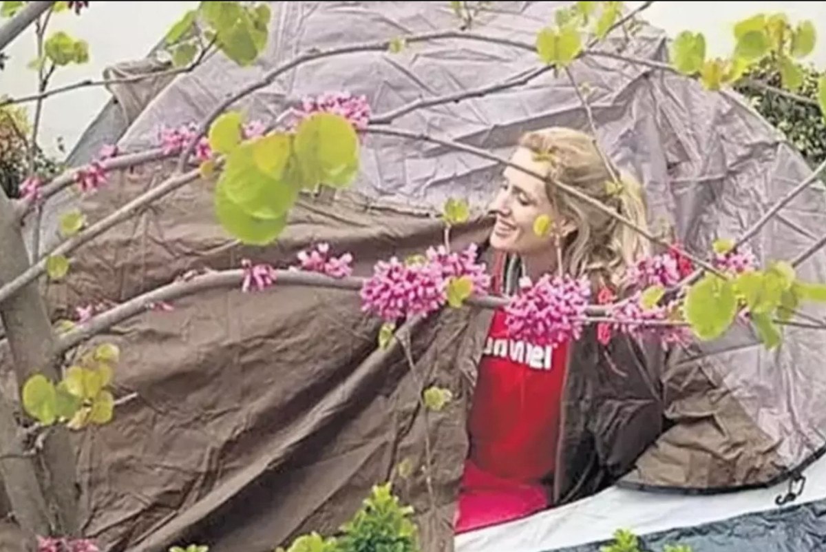 Çocuklarıyla birlikte çadırda sabahlayan Wilma Elles, o anları sosyal medya hesabından paylaştı.