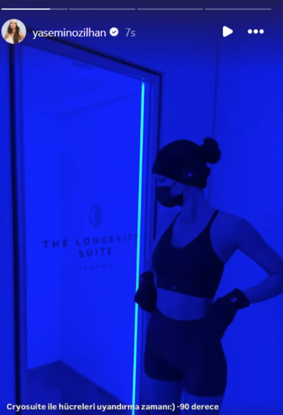Özilhan, -90 derecelik kriyoterapi (soğuk terapi) uygulamasına girdiği anları takipçileriyle paylaştı.