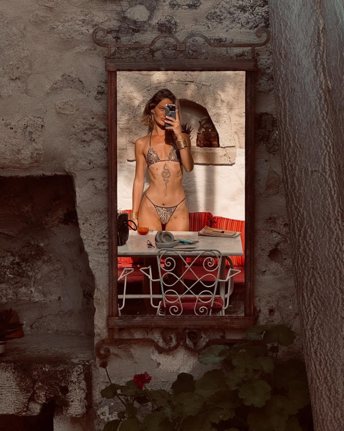 Zebra desenli ve mor renkli bikinisiyle takipçilerinin karşısına çıkan Arslan, fit vücudu ve dövmeleriyle beğeni topladı. Farklı bir paylaşımında ise pembe bikini tercihiyle dikkat çeken oyuncu, sonrasında bikinisinin üstünü çıkartarak üstsüz poz verdi.