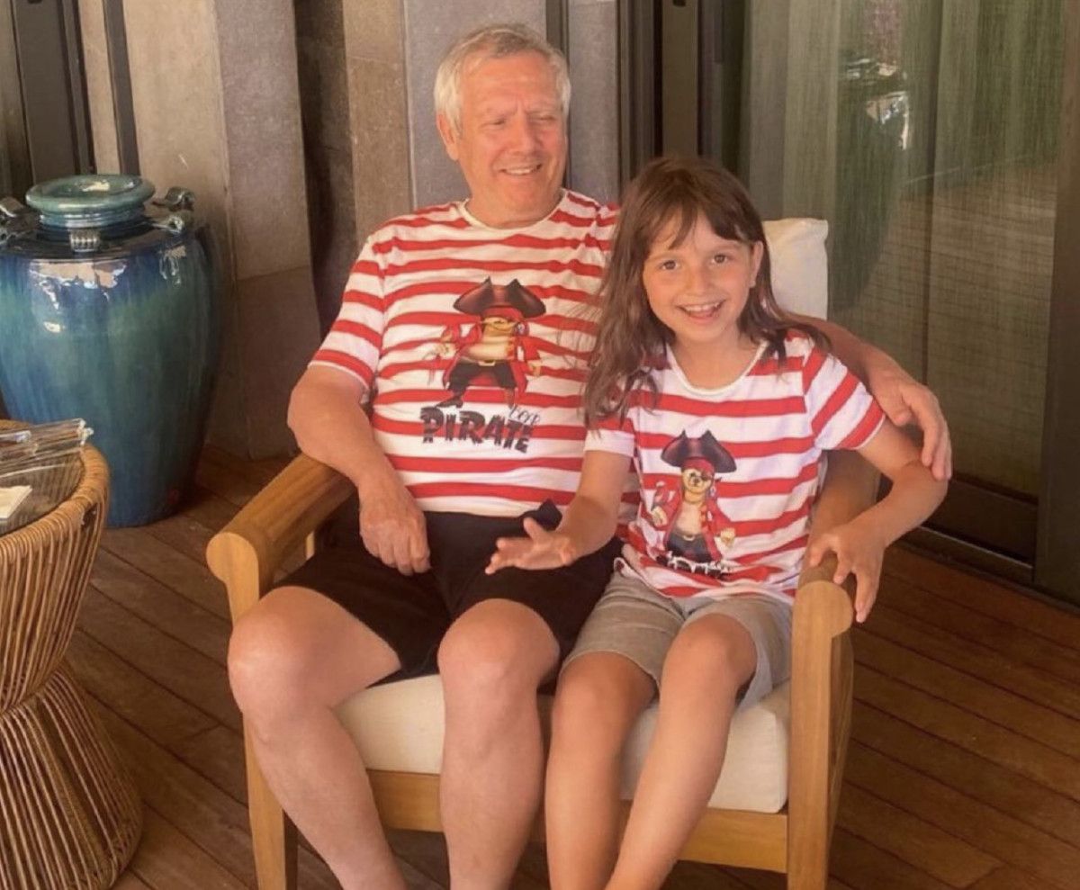 Paylaşımda baba-kızın aynı tasarıma sahip, kırmızı-beyaz çizgili ve “Little Pirate” yazılı tişörtler giydiği görüldü.