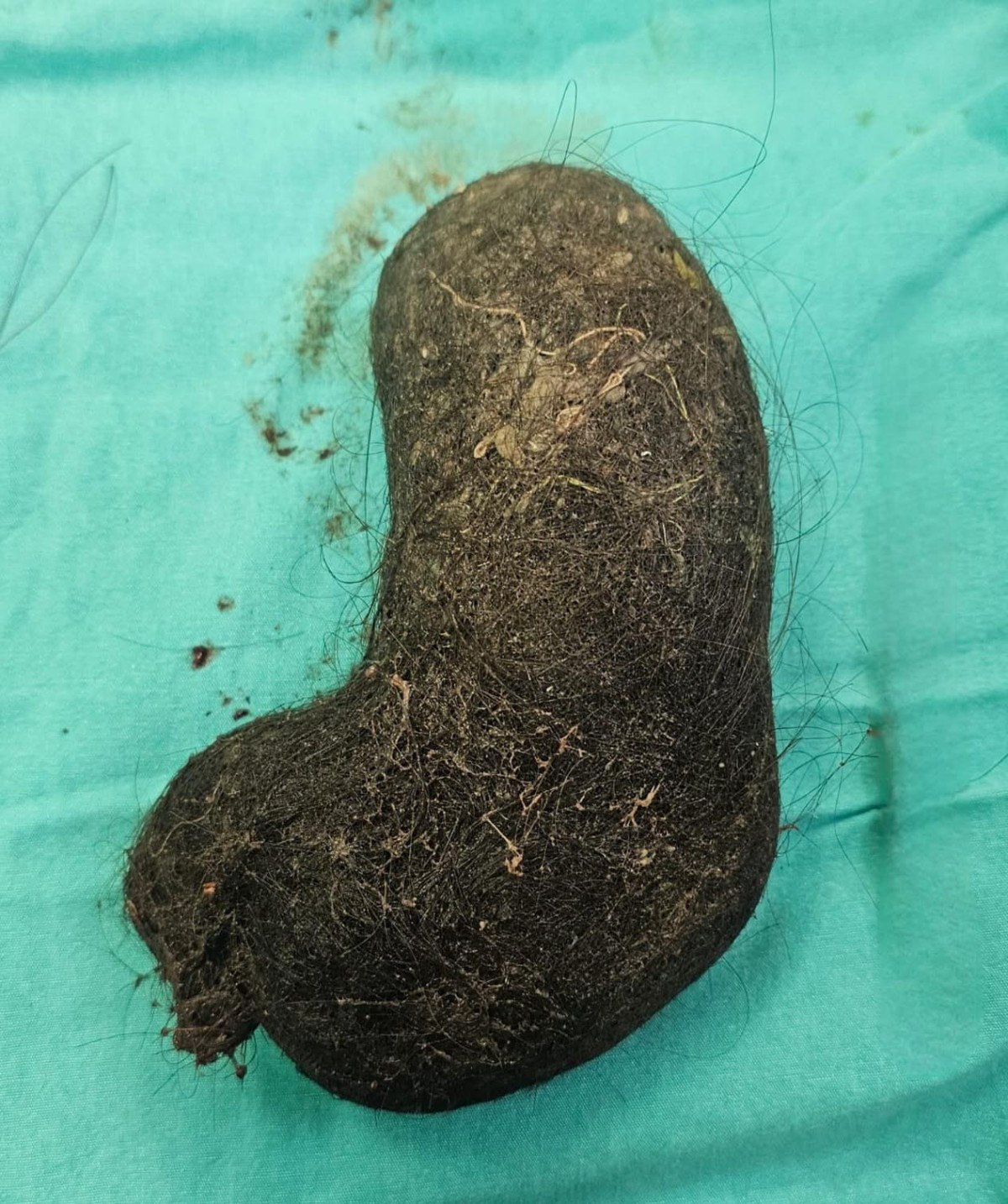 Çocuk Cerrahisi Uzmanları Op. Dr. Berkay Tekkanat ve Op. Dr. İbrahim Yıldırım tarafından gerçekleştirilen operasyonla, mideyi tamamen dolduran saç yumağının çıkarıldığı ve tıp literatüründe “bezoar” olarak bilinen kitlenin, genellikle uzun süreli saç veya yabancı madde yeme alışkanlığı sonucu mide içinde birikerek oluştuğu kaydedildi.