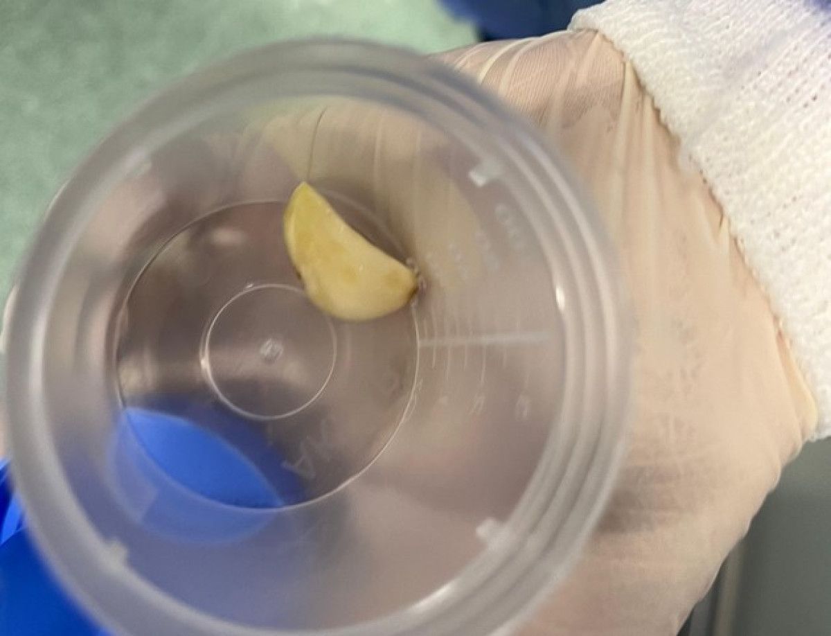 Başhekim Yardımcısı ve Göğüs Hastalıkları Uzmanı Dr. Hüsamettin Sazlıdere tarafından gerçekleştirilen operasyonla yaklaşık 1,5 santimetrelik sarımsak çıkarıldı. Nefes almakta güçlük çeken A.S., kısa sürede sağlığına kavuştu.