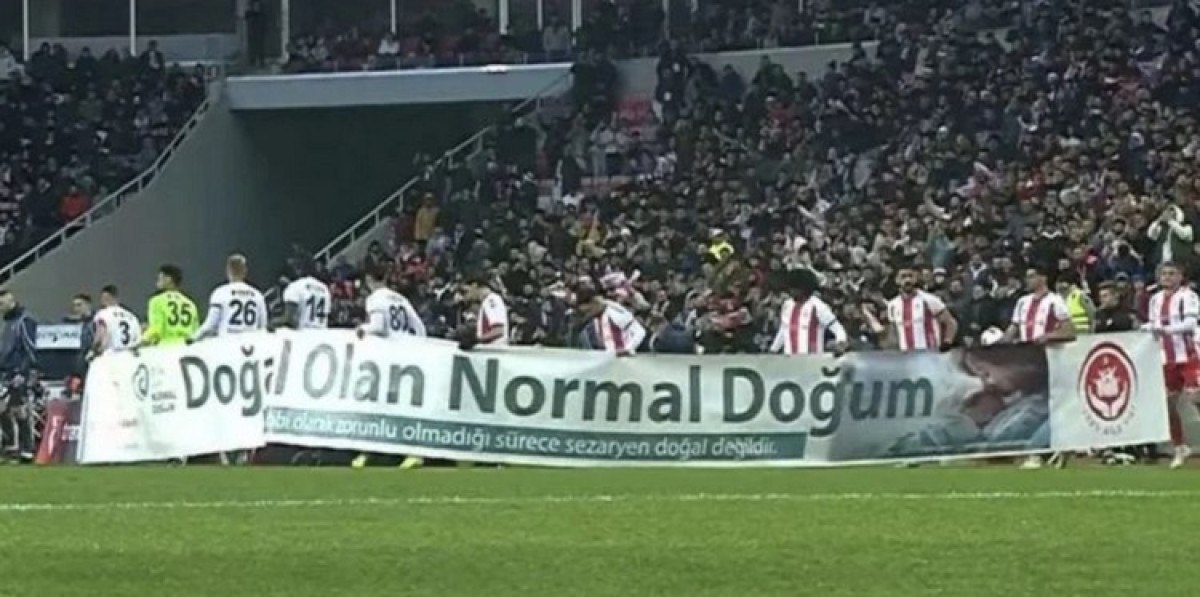 Sivasspor ile Fenerbahçe arasındaki maç öncesinde ev sahibi takımın sahaya çıkarken taşıdığı “Doğal olan normal doğum” yazılı pankart, sosyal medyada büyük yankı uyandırmıştı.