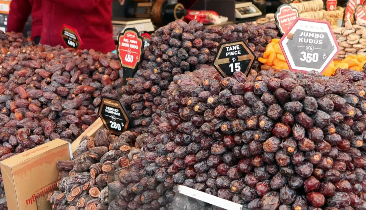Ramazan ayında geleneksel olarak iftar sofralarının vazgeçilmezlerinden olan hurma, tezgah ve raflardaki yerini aldı.