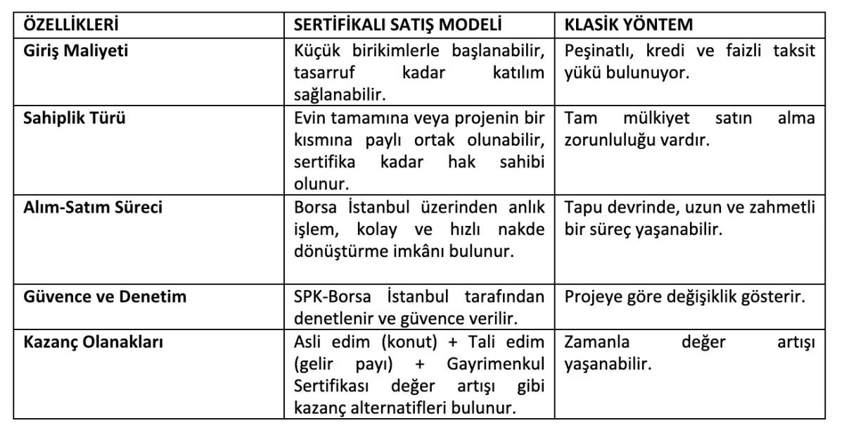 Gayrimenkul Sertifikası modeli; konut yatırımına dair faiz, peşinat, taksit gibi yükleri ortadan kaldırıyor.
