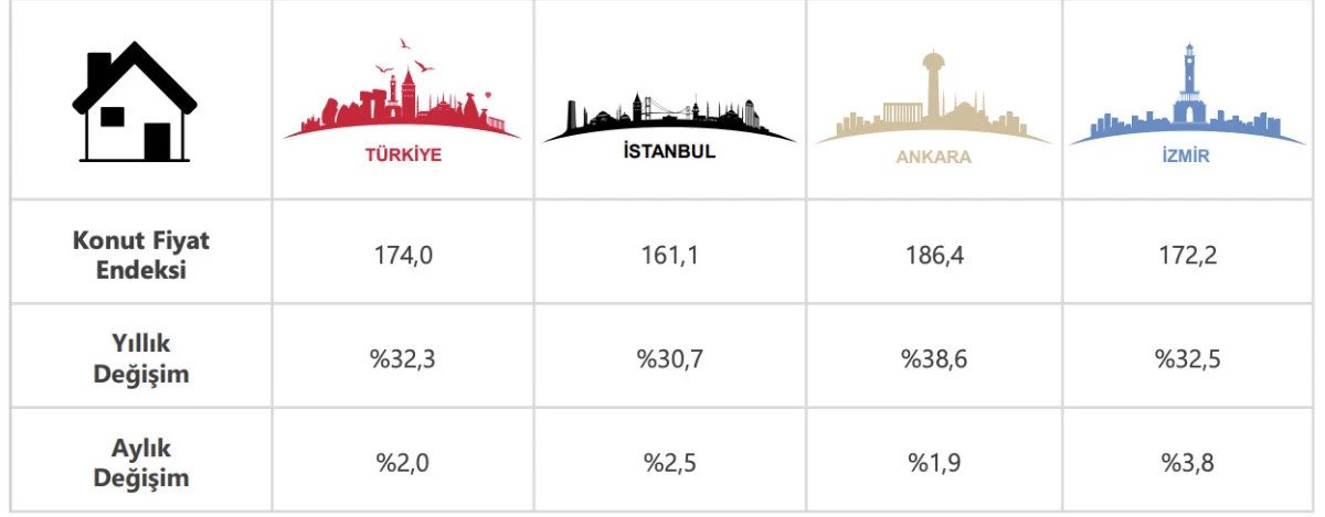 Ankara ve İzmir’le karşılaştırıldığında İstanbul’da konut fiyatlarının artış hızı daha düşük kaldı.