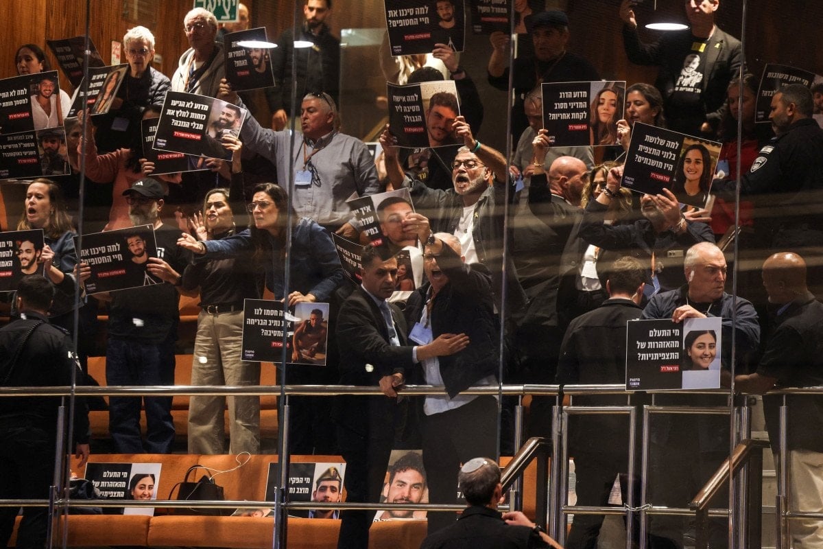 Gazze’deki çatışmalarda veya 7 Ekim’de yakınlarını kaybeden İsraillilerin yakınları da oylama sırasında protesto düzenledi.