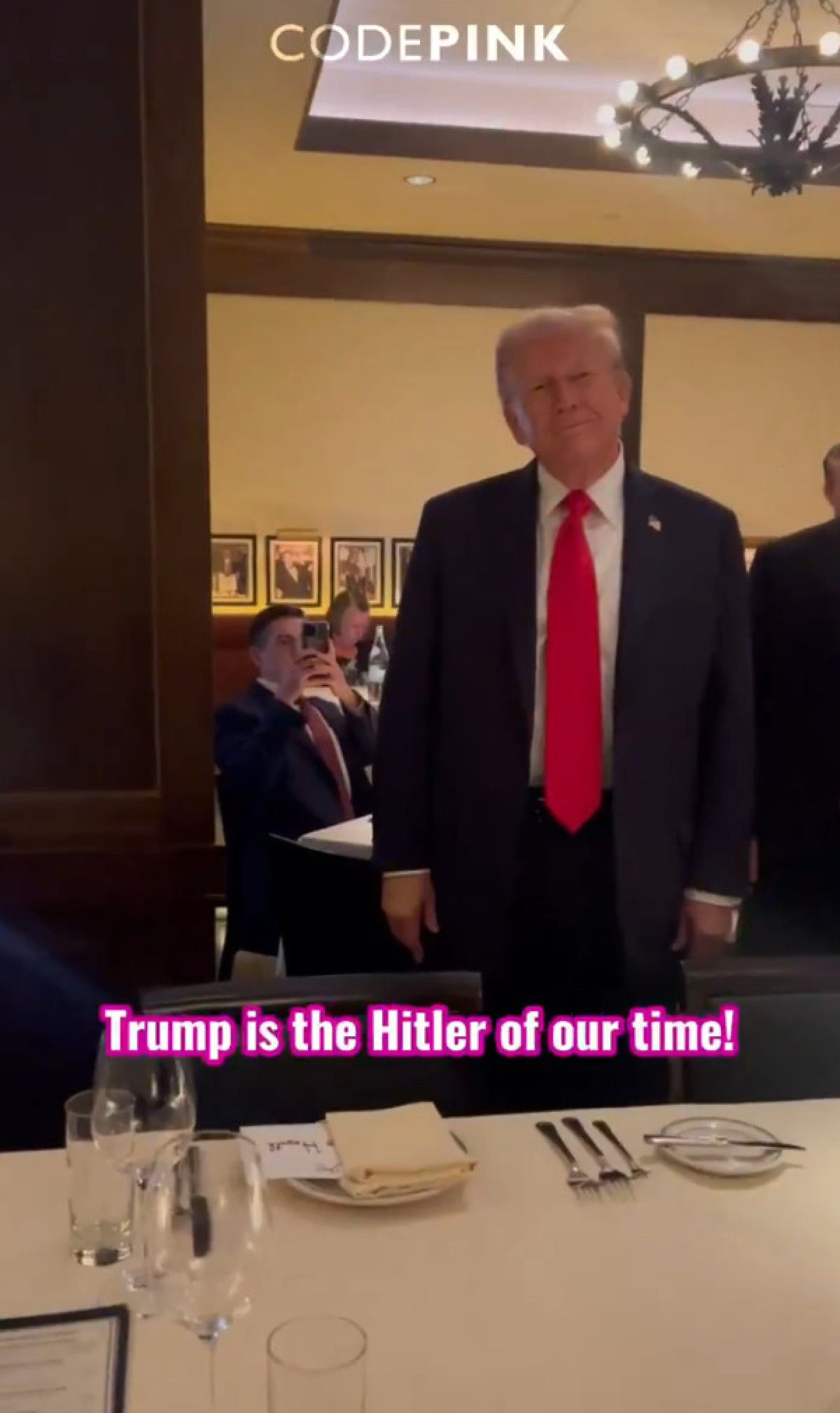Başkan Yardımcısı JD Vance ve bazı kabine üyelerinin de yer aldığı yemek için gittikleri restorana girişinde Trump, savaş karşıtı kadınların kurduğu “CodePink” adlı sivil toplum örgütü üyelerinin protestosuyla karşılaştı.
