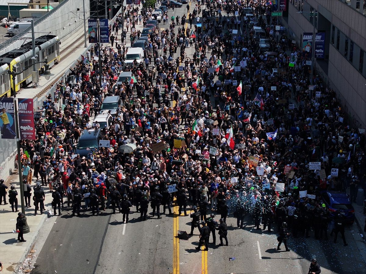 Gümrük muhafaza ekiplerinin çok sayıda düzensiz göçmeni gözaltında tuttuğu Los Angeles şehir merkezindeki Metropolitan Cezaevi gösterilerin odak noktası olurken, halen bu bölgedeki çatışmaların sürdüğü ifade edildi.