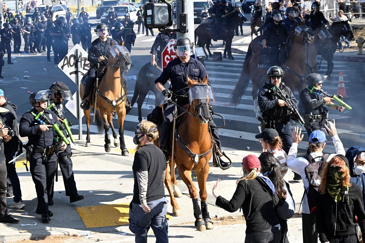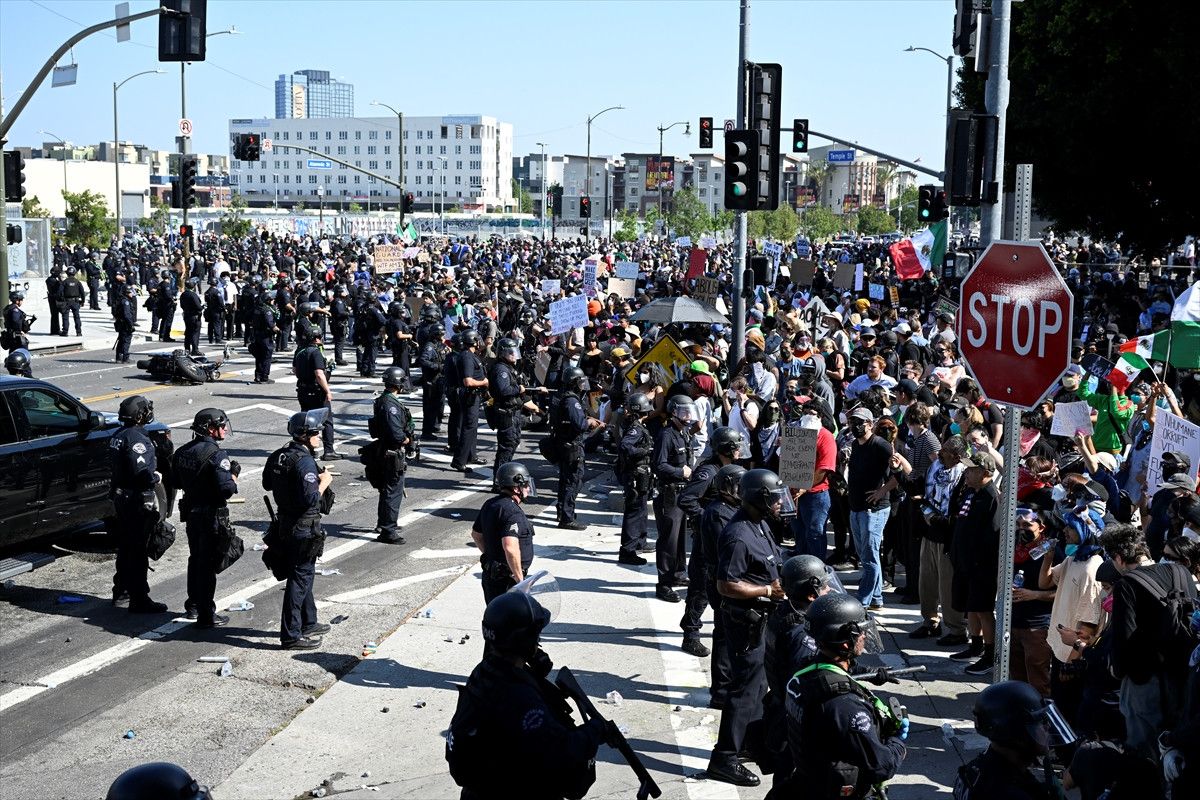 Los Angeles kentinde 3 gündür devam eden sınır protestolarında göstericiler ile güvenlik güçleri sert bir şekilde karşı karşıya geliyor.