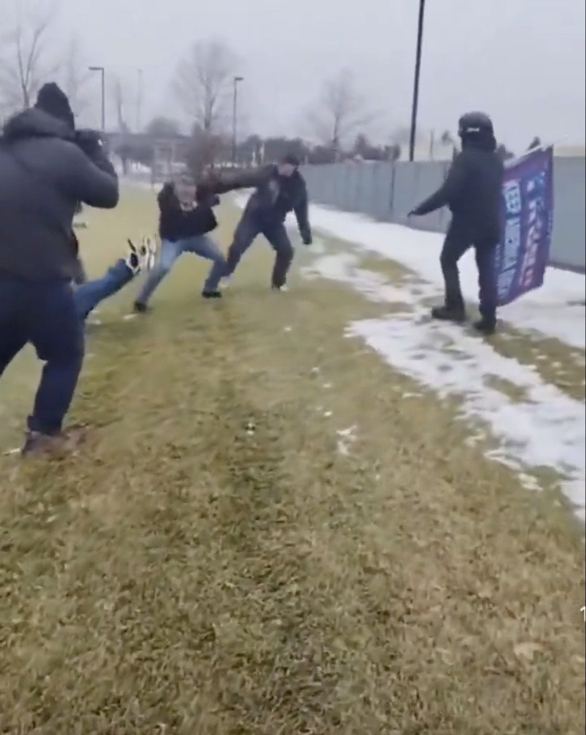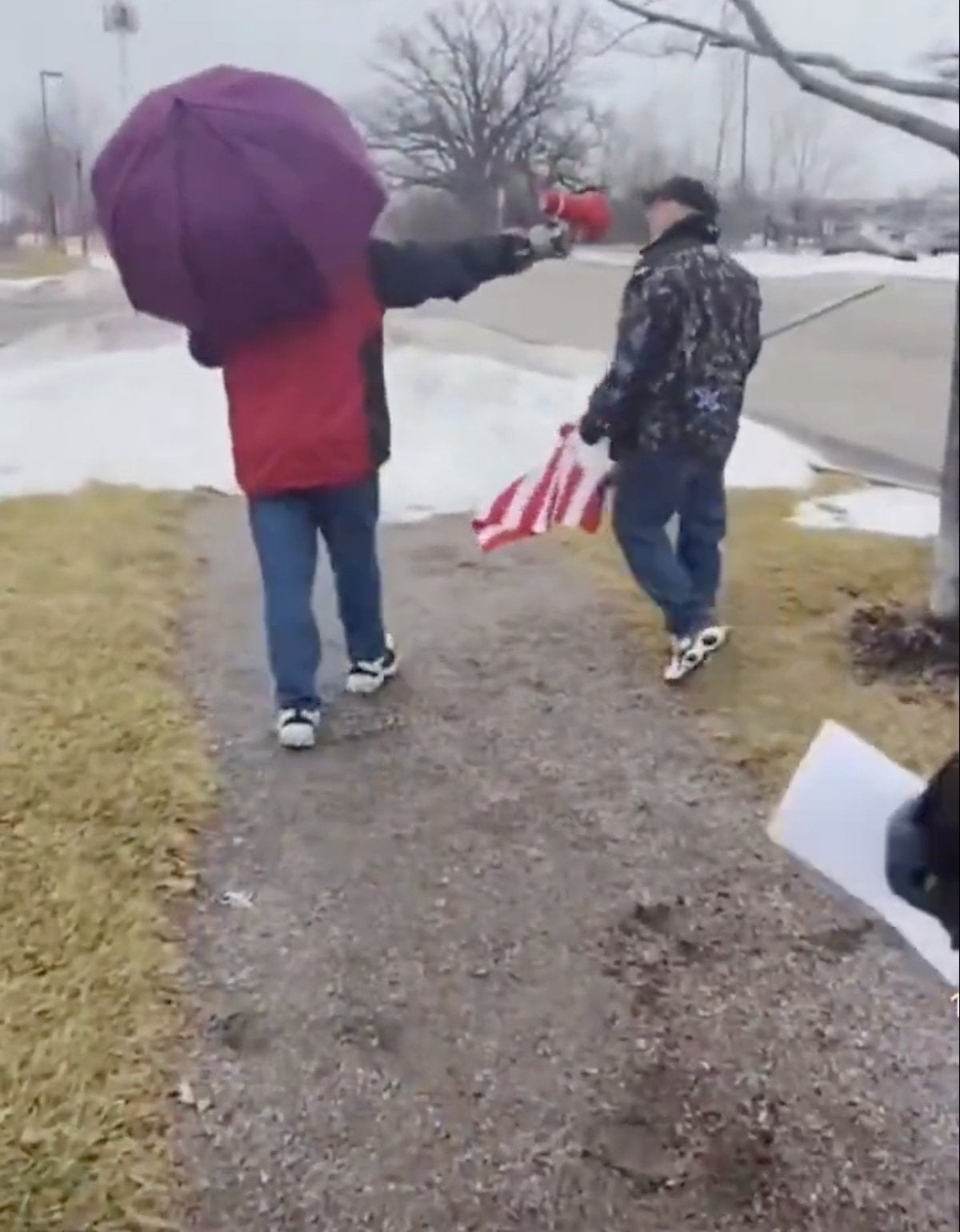X sosyal medya platformunda paylaşılan bir videoda, eylemcilerin arasında, ICE kurumunu savunan bir vatandaşın da bulunduğu görüldü.