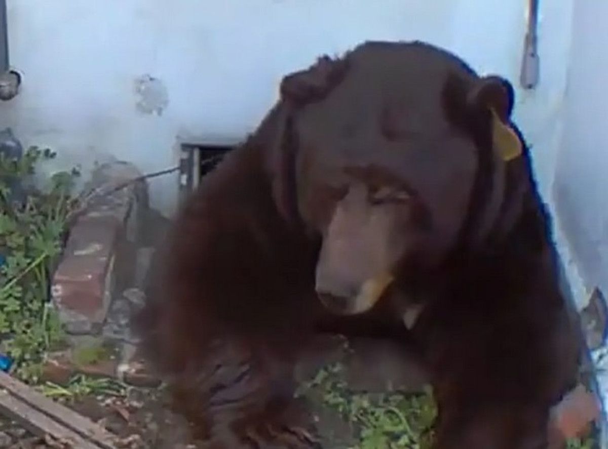 Kameralara yansıyan görüntüler, dev ayının 75 santimetrelik dar zemin boşluğuna rahatça girip çıktığını ortaya koydu. Ayının çöp kutularını karıştırdığı ve bahçedeki tuğlaları söktüğü anlar da kayda geçti.