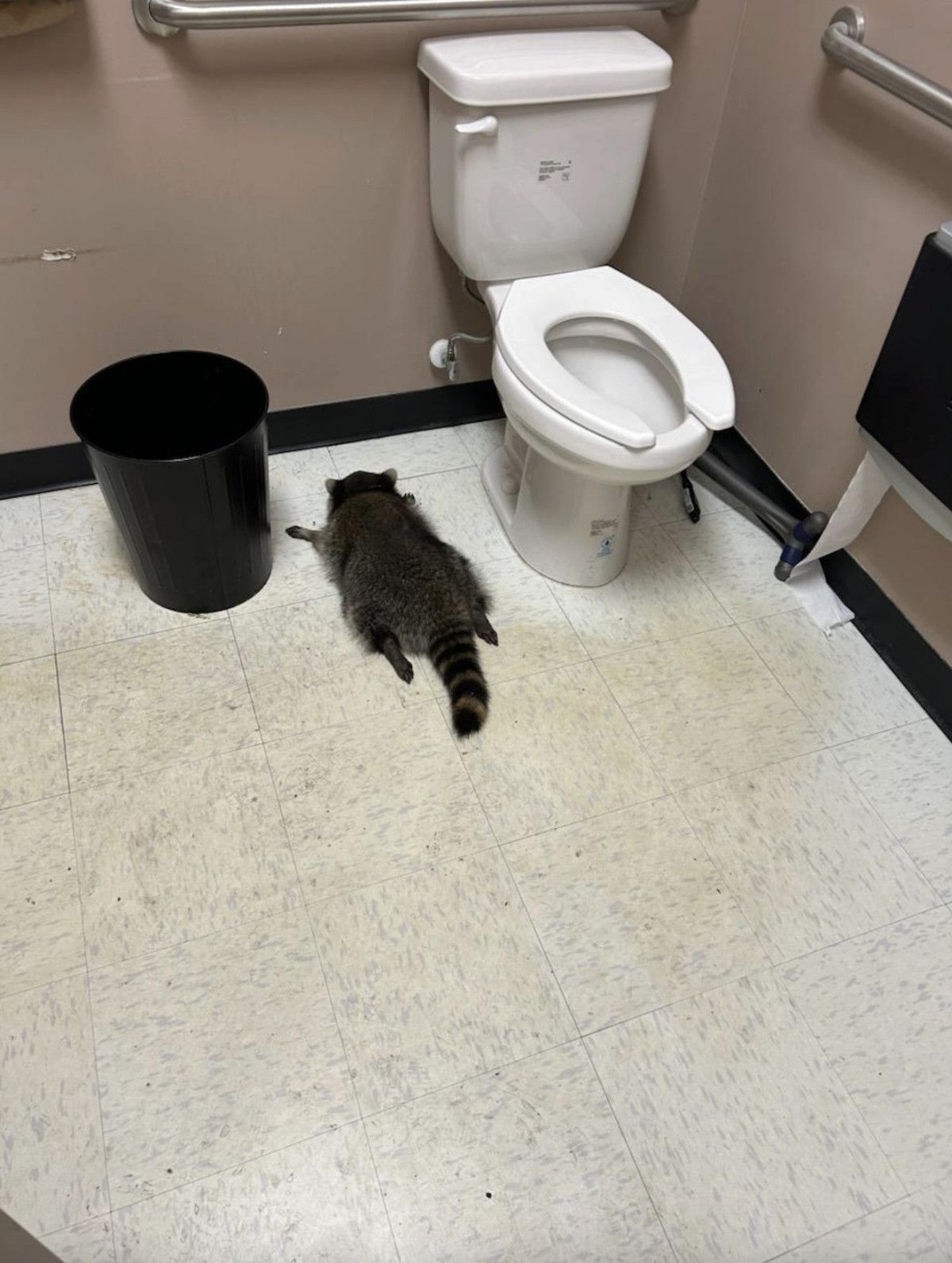 Dükkan çalışanı sabah işe geldiğinde rakunu tuvalette, fayansta sızmış uyur halde buldu.