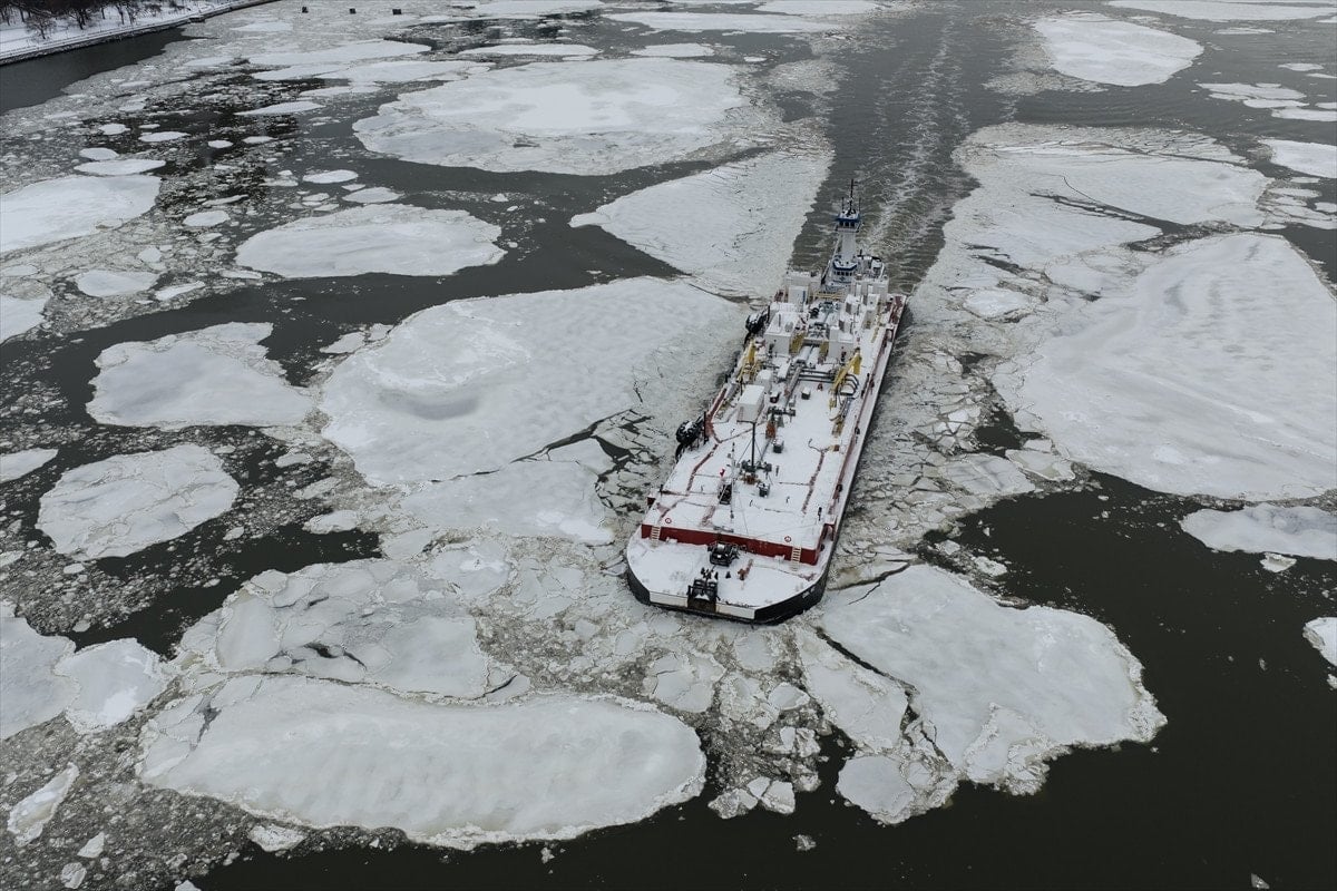 Nehir üzerinde buz kütleleri oluşurken gemi ve tekneler ilerlemekte zorlandı.