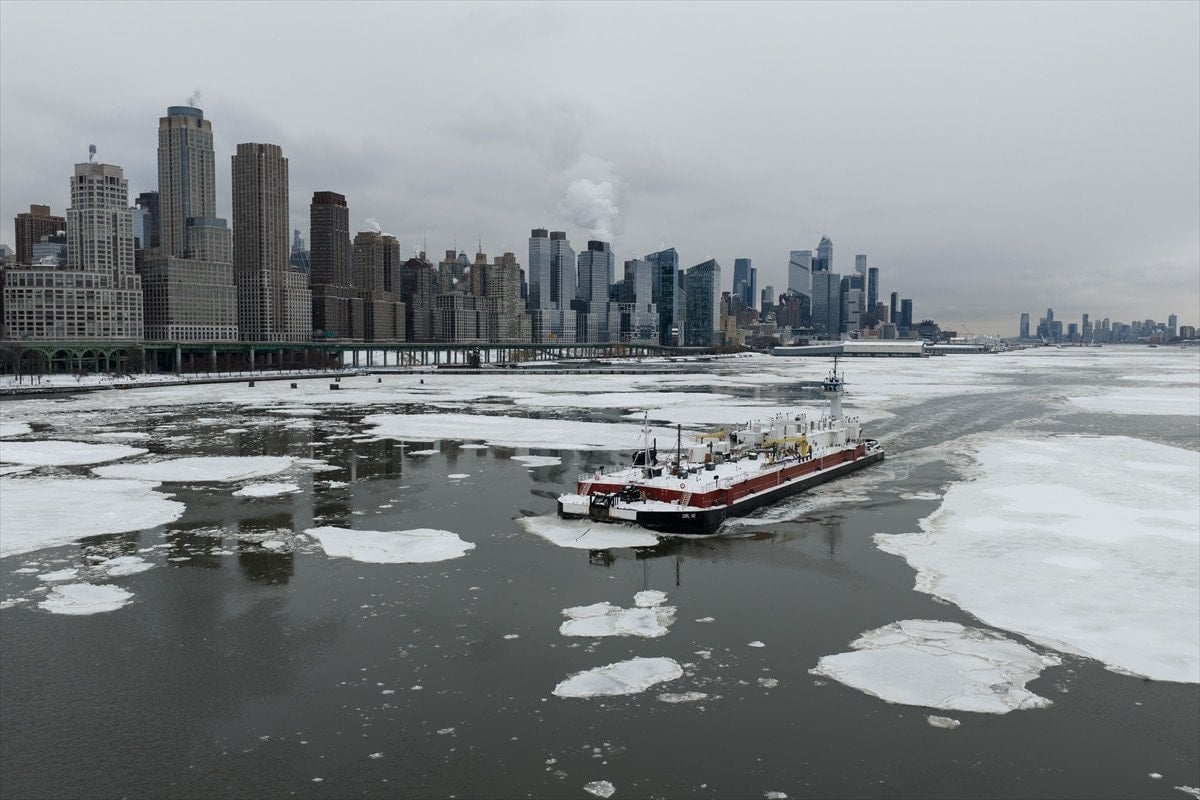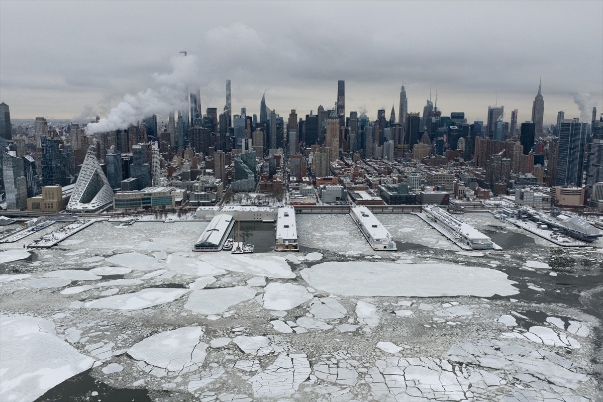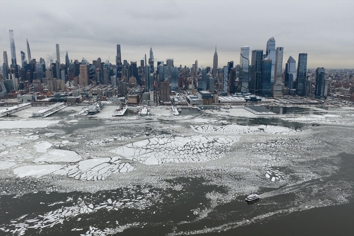 Kentte etkili olan yoğun kar yağışı ve dondurucu soğuklar sonrası Hudson Nehri’nin bazı bölümleri dondu.