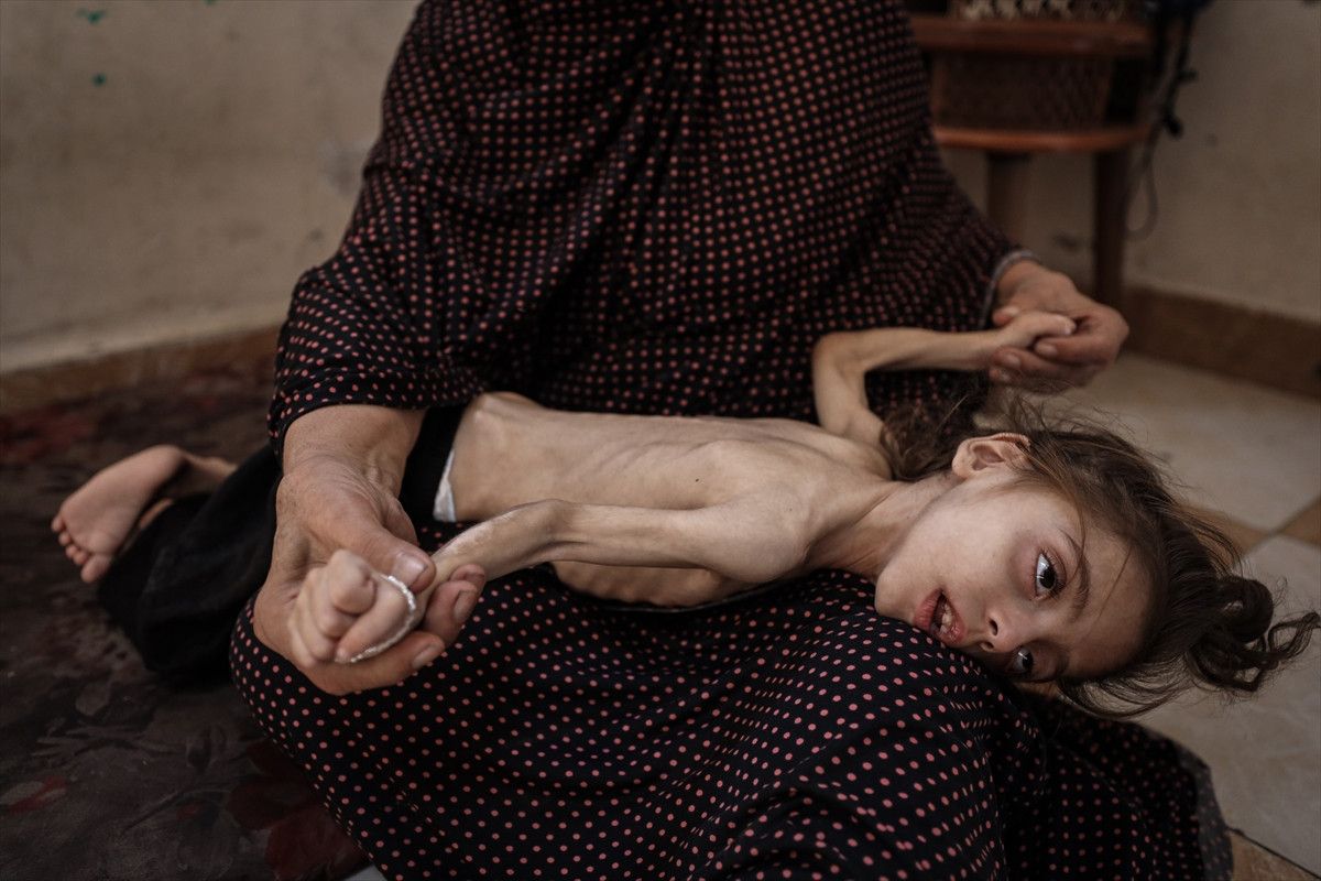 Gazze’nin Şeyh Rıdvan Mahallesi’nde yaşayan 6 yaşındaki kız çocuğu Misk el-Medhun, beyin atrofisi hastalığının yanı sıra açlık nedeniyle yetersiz beslenme ile de mücadele ediyor.