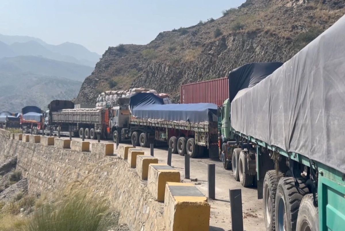 Yük kamyonları ve tırlar sınırda beklerken, işlek geçiş noktalarından biri olan Torkham Sınır Kapısı’nda uzun araç kuyrukları oluştu.