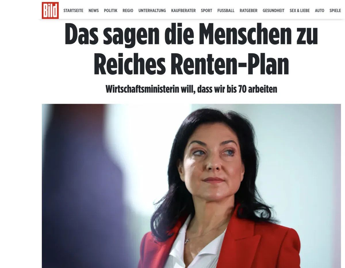 Almanya Ekonomi Bakanı Katherina Reiche, toplumun yaşlanması ve doğurganlık oranlarının düşmesi sebebiyle emeklilik yaşının 70’e çıkarılması gerektiğini açıkladı.