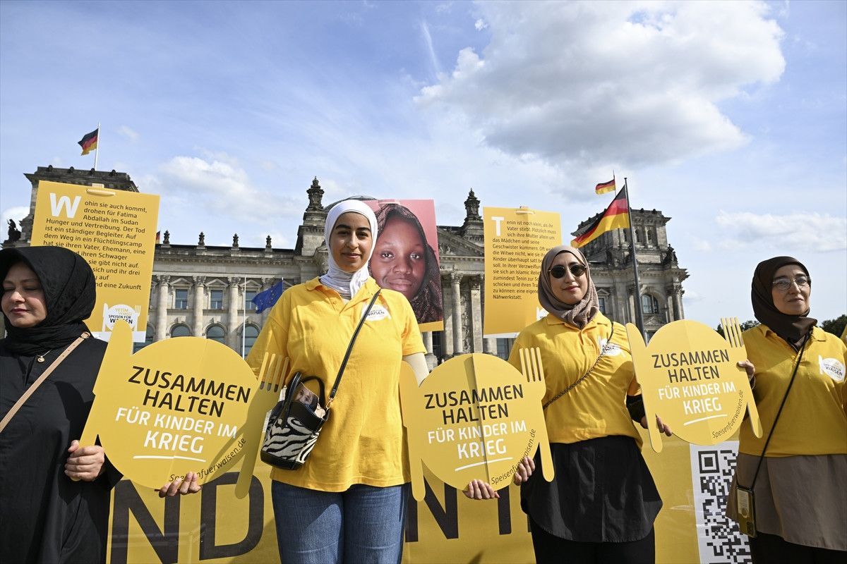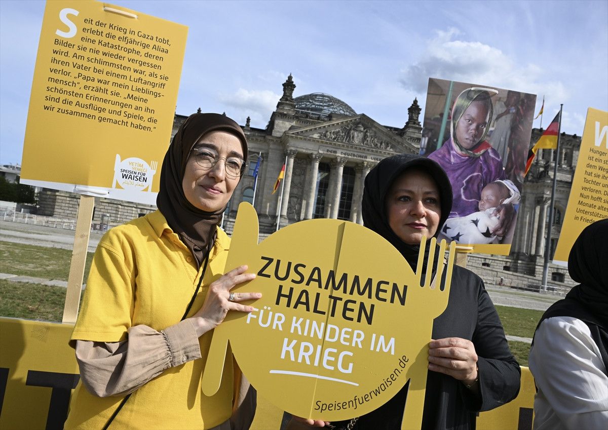 Islamic Relief yardım kuruluşu, başkent Berlin’deki Federal Meclis binası önünde savaş bölgelerinde mağdur olan çocukların durumuna dikkat çekmek için etkinlik düzenledi.