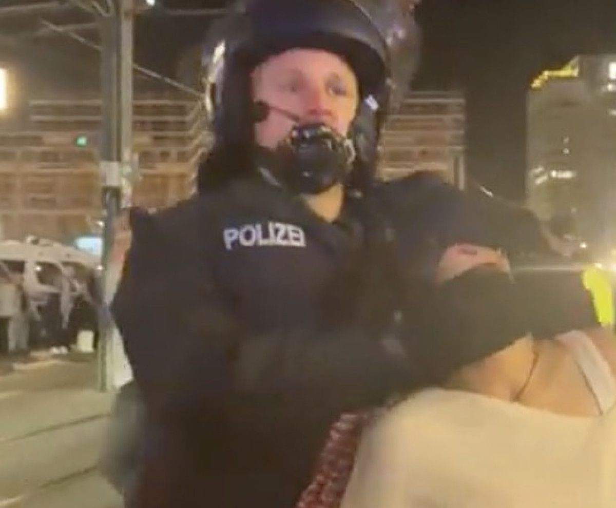İki polisin bir kadın göstericinin koluna girip gözlerini kapattıktan sonra boynunu geriye bastırarak gözaltına alması ise tepkilere neden oldu.