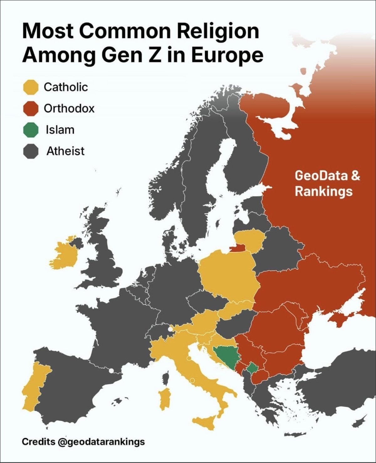 Batı bloğundan yalnızca İtalya, Avusturya, Portekiz ve İrlanda olmak üzere dört ülkenin Z jenerasyonu, çoğunlukla bir dine mensup.