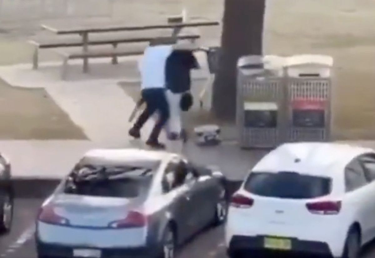 Görüntülerde saldırgana arkadan müdahale eden sivilin kısa bir boğuşma sonrasında saldırganın uzun namlulu silahını ele geçirdiği görülüyor.