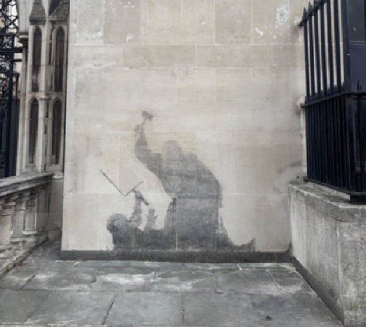 Dünyanın farklı yerlerinde yaptığı şablon tekniğindeki grafitilerle tanınan ve gerçek kimliği bilinmeyen İngiliz sokak sanatçısı Banksy, Londra’daki Yüksek Mahkemenin duvarına yaptığı yeni resmini Instagram hesabından paylaştı.