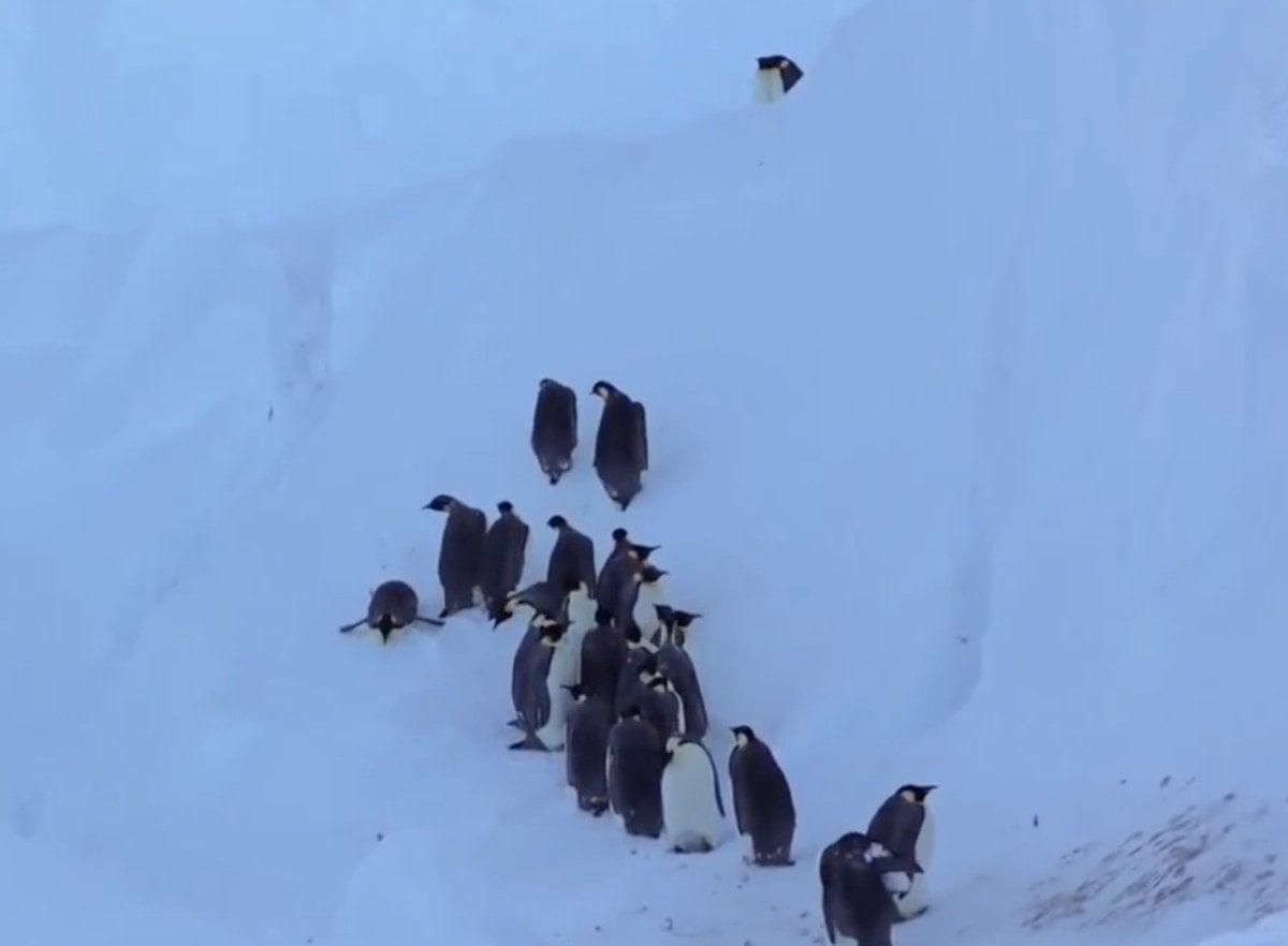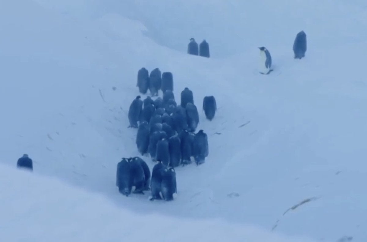 Eğim çok dik olduğu için yukarı tırmanamayan penguenler, yavrularıyla birlikte -60 dereceyi bulan soğukta sıkışıp kalırken bazı yavruların donarak öldüğünü gören ekip, geri kalanların da yavaş yavaş ölüme sürüklendiğini fark etti.