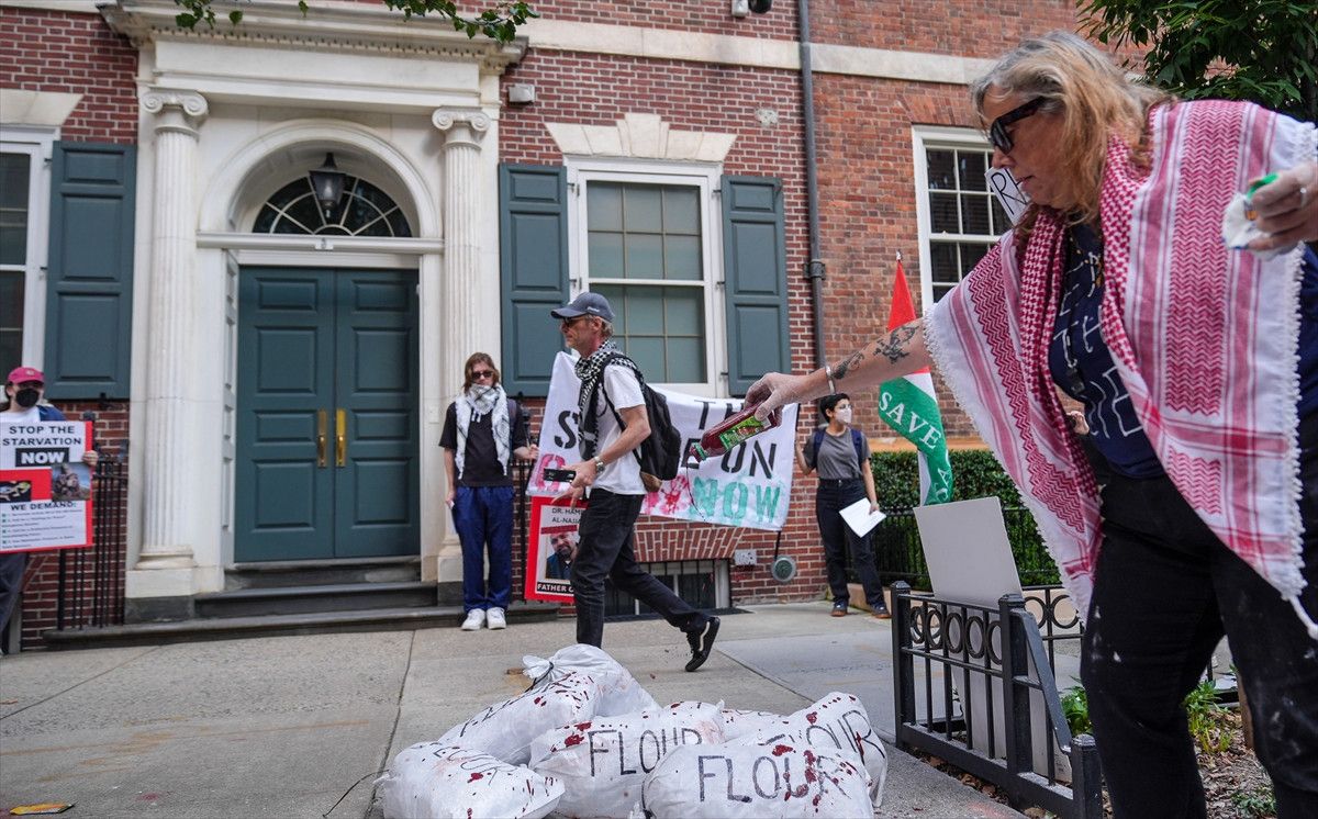 “Shut it Down for Palestine” isimli grubun üyeleri, Birleşmiş Milletler (BM) Genel Sekreteri Antonio Guterres’in New York’taki resmi konutunun önünde toplanarak gösteri düzenledi.