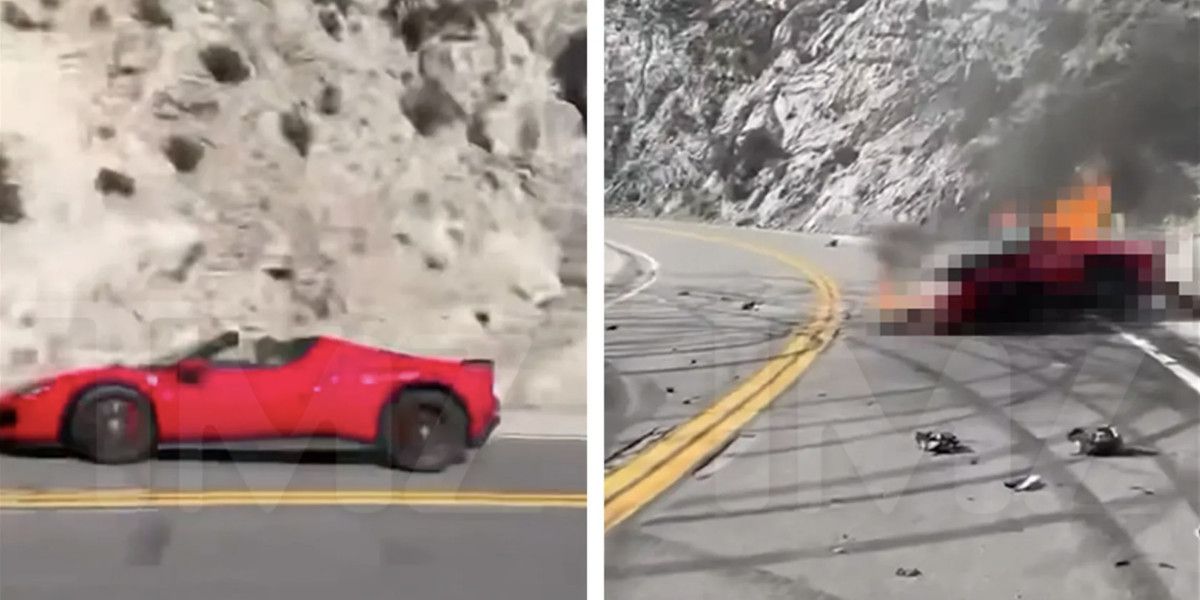 Görgü tanıkları, dağ yolunda alevler içinde kalan, hurda haline gelmiş kiraz kırmızısı Ferrari’nin videosunu paylaştı.