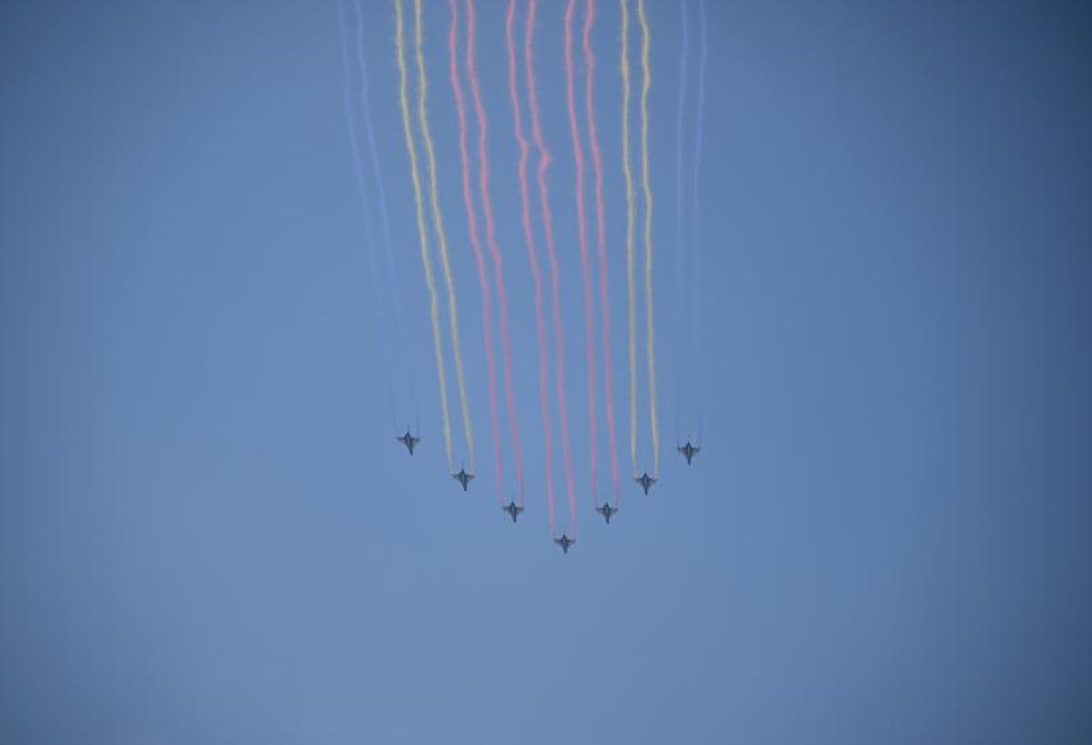Çin Devlet Başkanı Şi Cinping, etkinlikte bir konuşma yaptı ve askeri birlikleri denetledi.