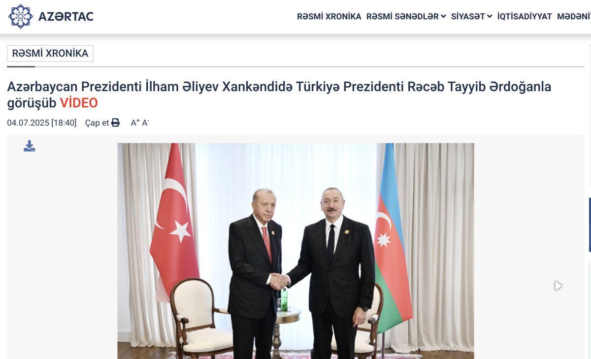 Azerbaycan Devlet Haber Ajansı (AZERTAC) haberi, “Cumhurbaşkanı Erdoğan: Hankendi’de Azerbaycan’la dayanışmayı bir kez daha gösterdik” başlığıyla duyurdu.