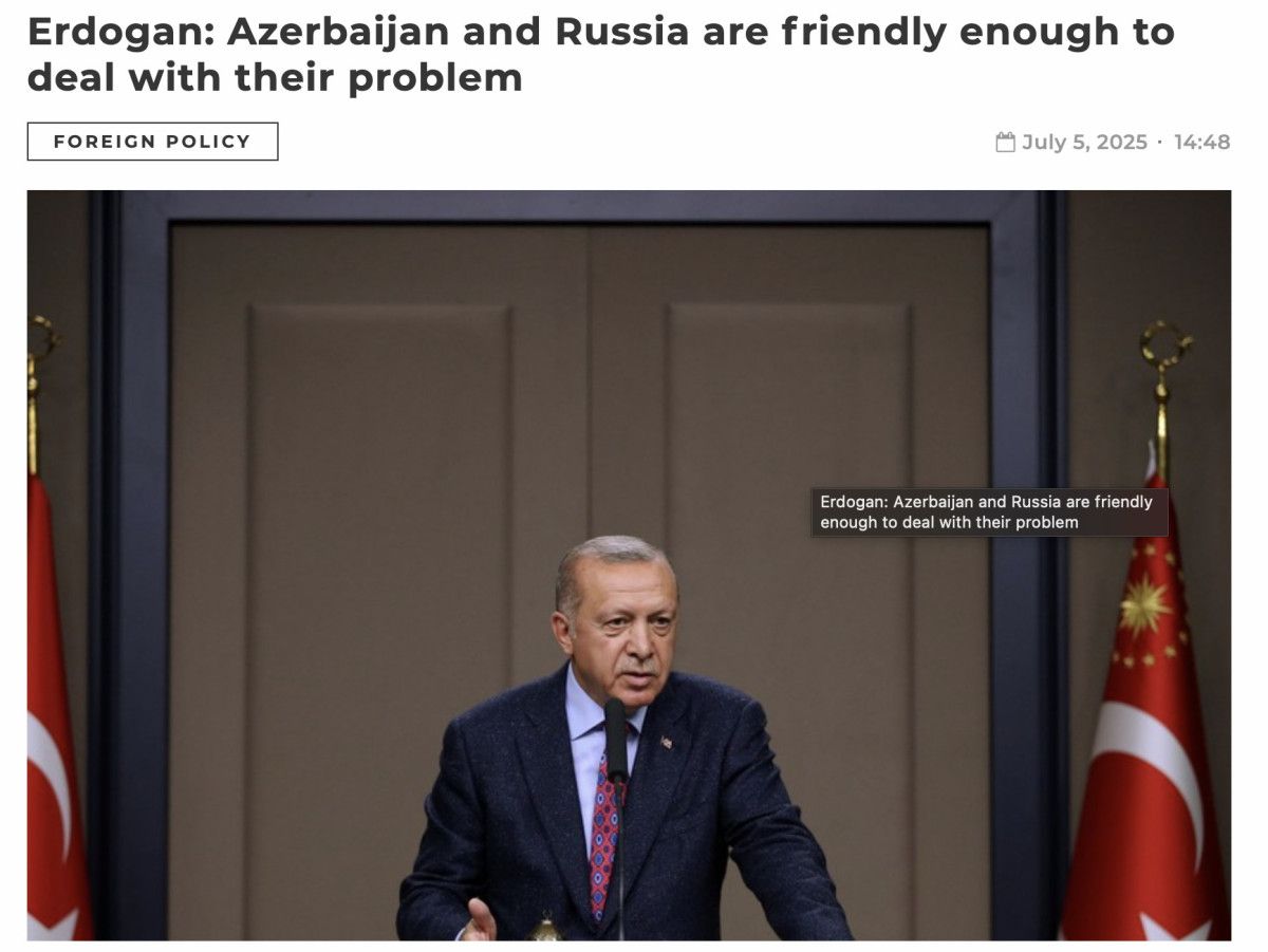 APA Haber Ajansı, “Erdoğan, Rusya ile Azerbaycan arasındaki gerginliğe ilişkin açıklama yaptı” başlığıyla verdiği haberde, Cumhurbaşkanı Erdoğan’ın diplomatik dili ön plana çıkararak, yaşanan gelişmelerin makul ve yapıcı bir zeminde çözülmesi gerektiğine dair ifadelerine yer verdi.