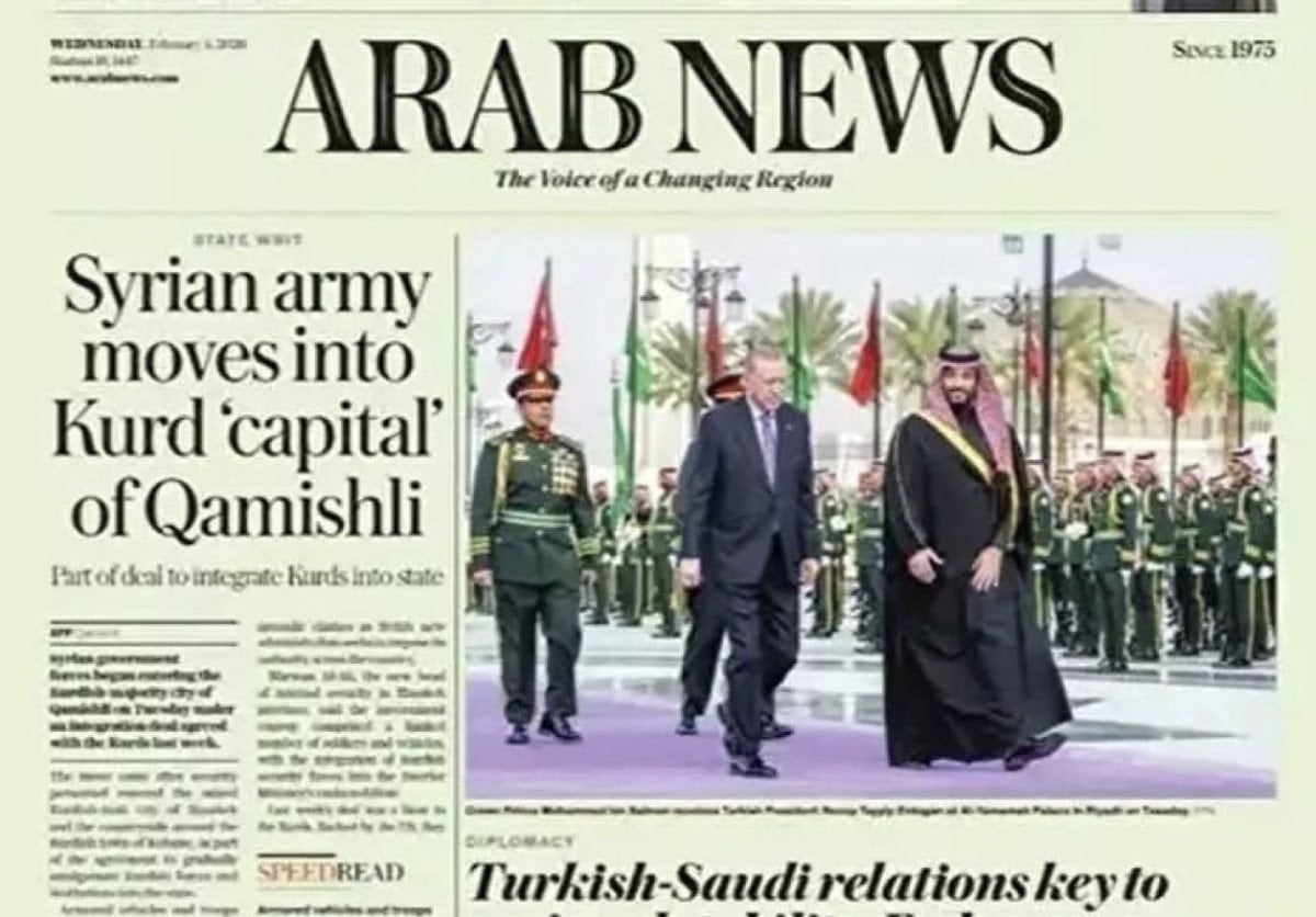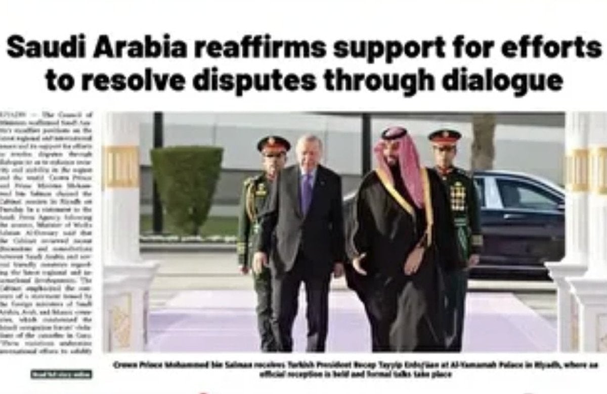 Saudi Gazette, Cumhurbaşkanı Erdoğan’ın Riyad’daki El-Yemame Sarayı’nda resmi törenle karşılandığını ve iki ülke arasında resmi görüşmeler yapıldığını aktarırken; Al Madina gazetesi Türkiye–Suudi Arabistan ilişkilerini siyasi, askeri ve ekonomik ufuklarıyla ele aldı.