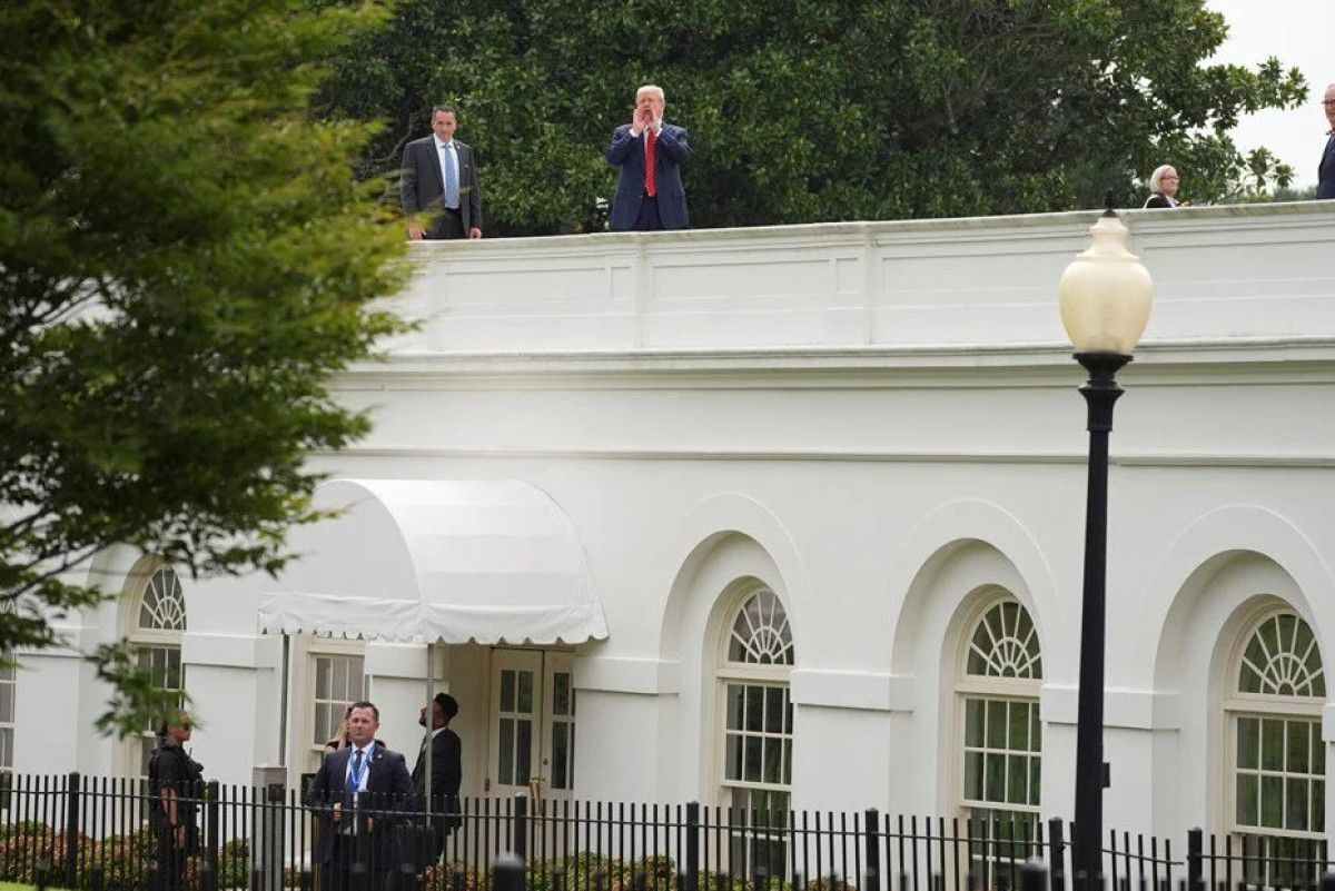 Trump, bu kez Beyaz Saray’ın çatısında yanındaki heyetle birlikte yürürken görüntülendi.