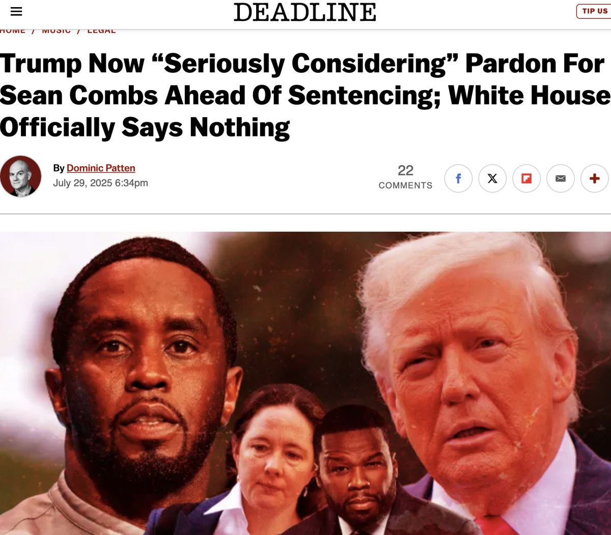 Deadline’ın özel haberine göre, Combs’un ekim ayında gerçekleşecek ceza duruşması öncesinde Trump’ın devreye girme ihtimali artıyor.
