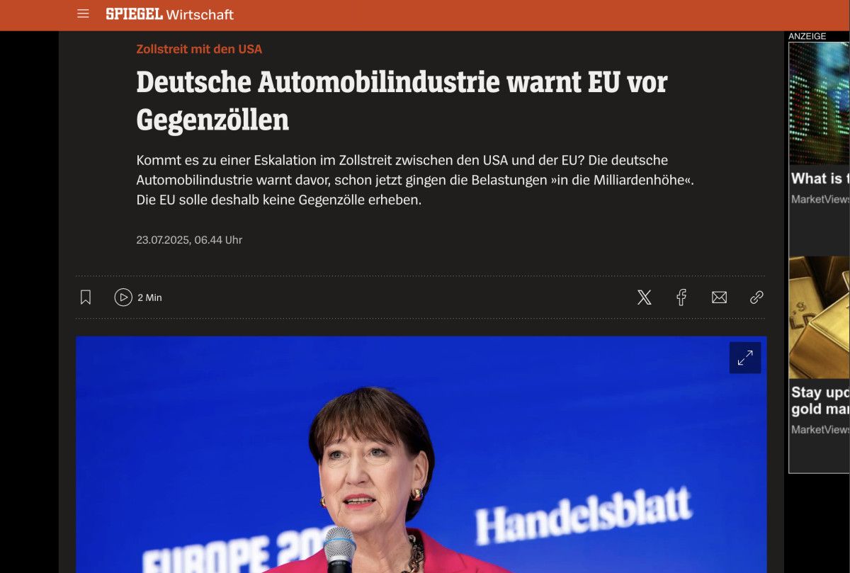 Müller’e göre, Brüksel’in ABD menşeli otomobil ve yedek parçalara karşılık olarak gündeme aldığı “karşı gümrük tarifeleri” önerisi, Alman şirketlerini bir kez daha vurabilir. Çünkü ABD’den Avrupa’ya yapılan otomobil ihracatının yaklaşık %65’i bizzat Alman firmalarının ABD’deki fabrikalarından geliyor. Yani karşı tarife, aslında yine Alman üreticiyi vuracak.