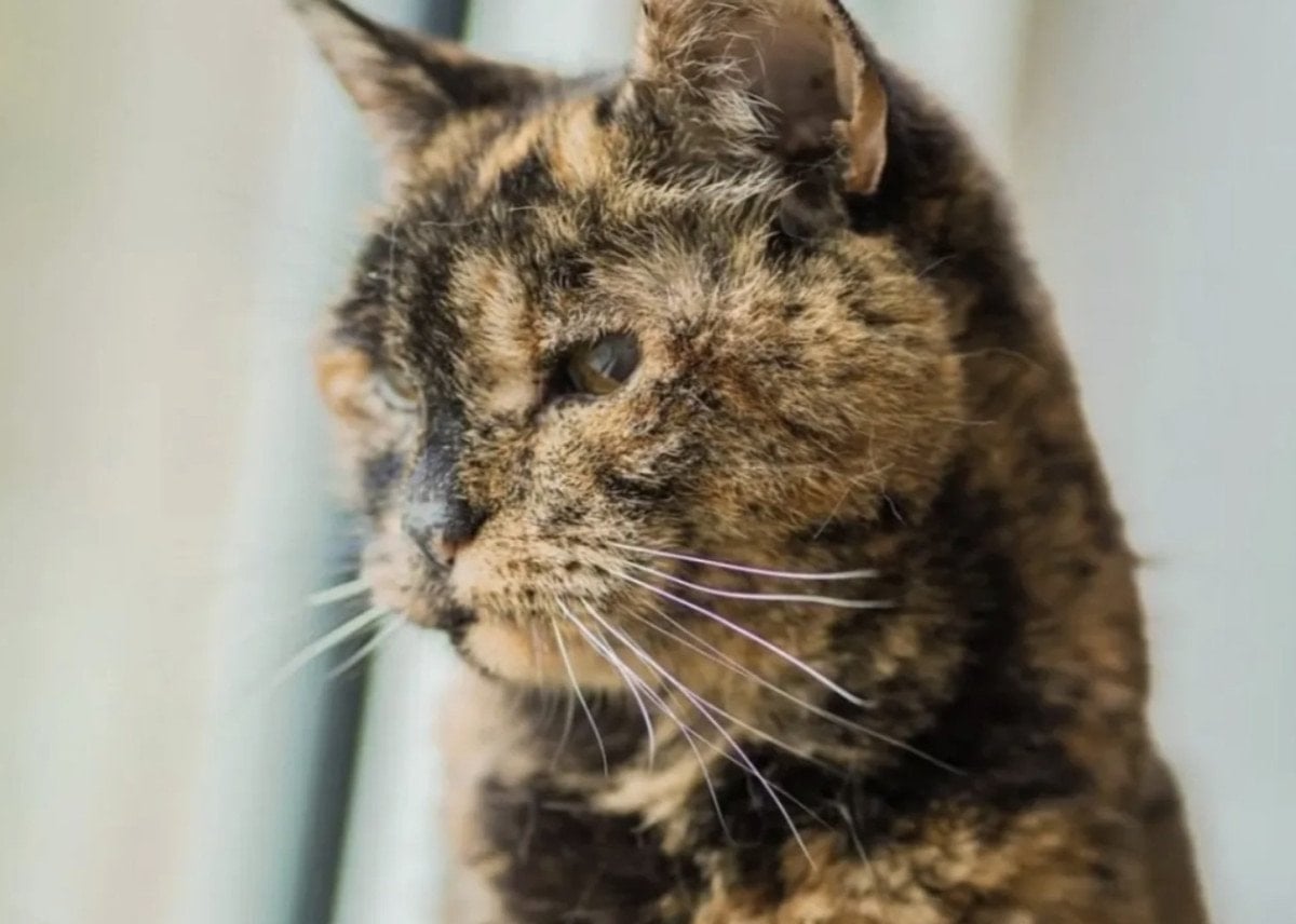 Şu anda sağır ve kısmen görme kaybı yaşayan Flossie’nin günün belirli saatlerinde kestirmek ve mama yemek dışında en sevdiği şey hâlâ tırmanmak.