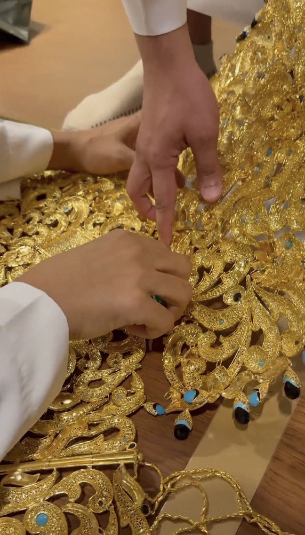 Dubai’de tasarımı yapılan ve 10.08 kilogram 21 ayar altından üretilen elbiseyi taşıyan mankenin de oldukça dikkatli hareket ettiği görüldü.