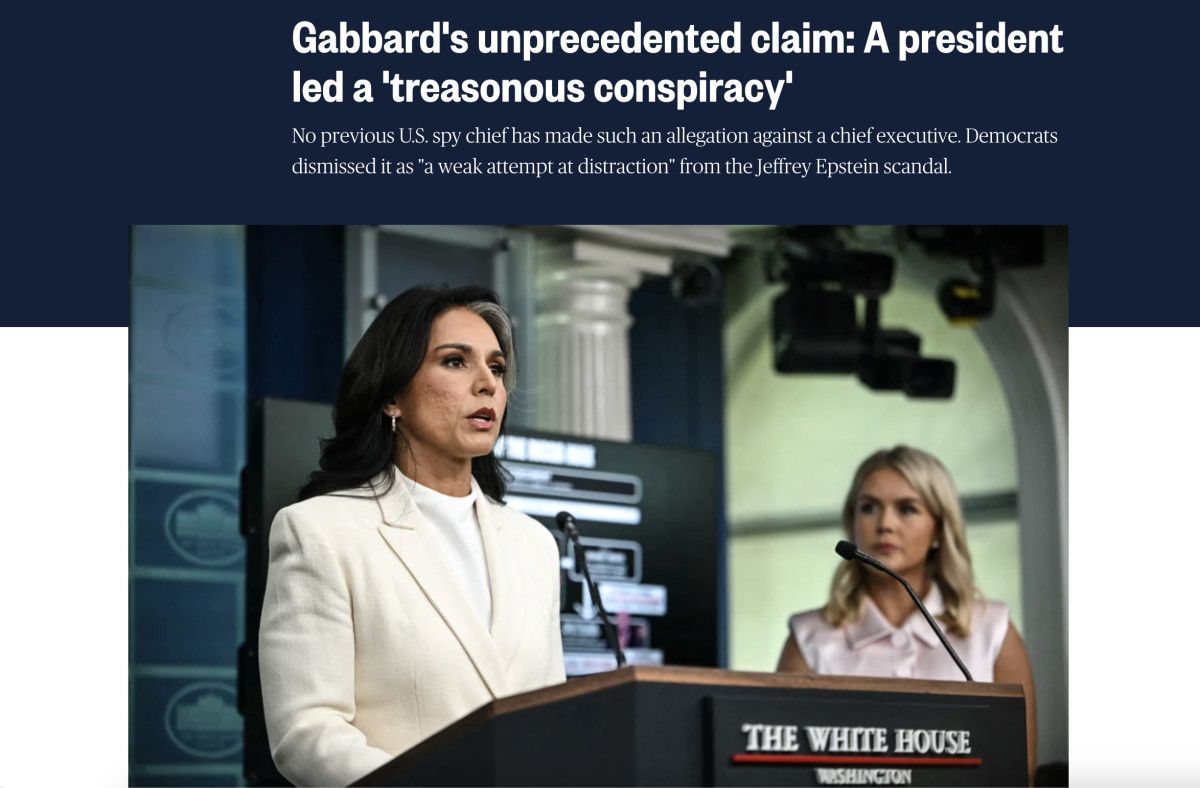 Beyaz Saray İstihbarat Direktörü Tulsi Gabbard, 2016 seçimlerine Rusya’nın müdahalesine ilişkin istihbarat raporunun “üretilmiş” olduğunu öne sürerek, eski Başkan Barack Obama’yı hedef aldı. Gabbard’ın kamuoyuna sunduğu gizli belgelerle birlikte Adalet Bakanlığı, Obama’ya yönelik hukuki adımların değerlendirileceğini duyurdu.