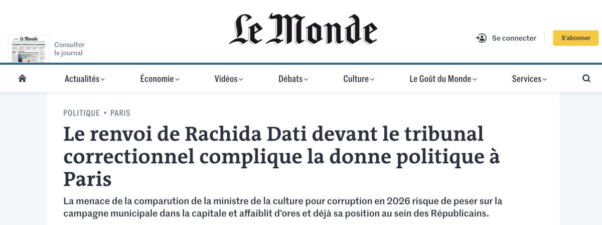 Fransa’nın gündeminde, Kültür Bakanı Rachida Dati’nin yolsuzluk ve nüfuz ticareti iddiaları yer alıyor. Dati, Renault-Nissan skandalıyla bağlantılı olarak yargılanmak üzere mahkemeye sevk edildi.