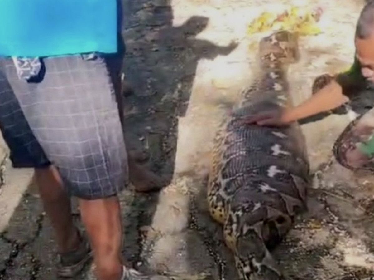 Cumartesi günü öğleden sonra saat 15.40 civarında, semt sakinleri bahçelik alanda hareketsiz duran ve karnı olağandışı şekilde şişkin bir pitonla karşılaştı.