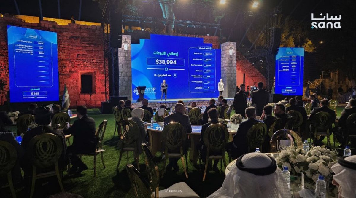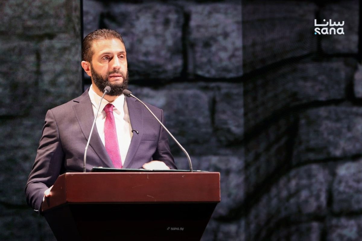 Şara, konuşmasında “Devrik rejim ekonomimizi yıktı, servetlerimizi talan etti, evlerimizi harap etti ve halkımızı kamplara, gurbet ellerine savurdu. Bugün burada, yaralı Suriye’mizi onarmak, ülkemizi yeniden inşa etmek ve yerinden edilen vatandaşlarımızı topraklarına döndürmek için bir araya geldi” ifadelerini kullandı.