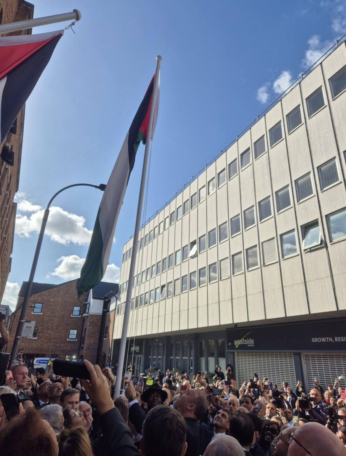 Hükümetin tanıma kararından sonra Filistin Büyükelçiliğine Filistin bayrağı çekildi.