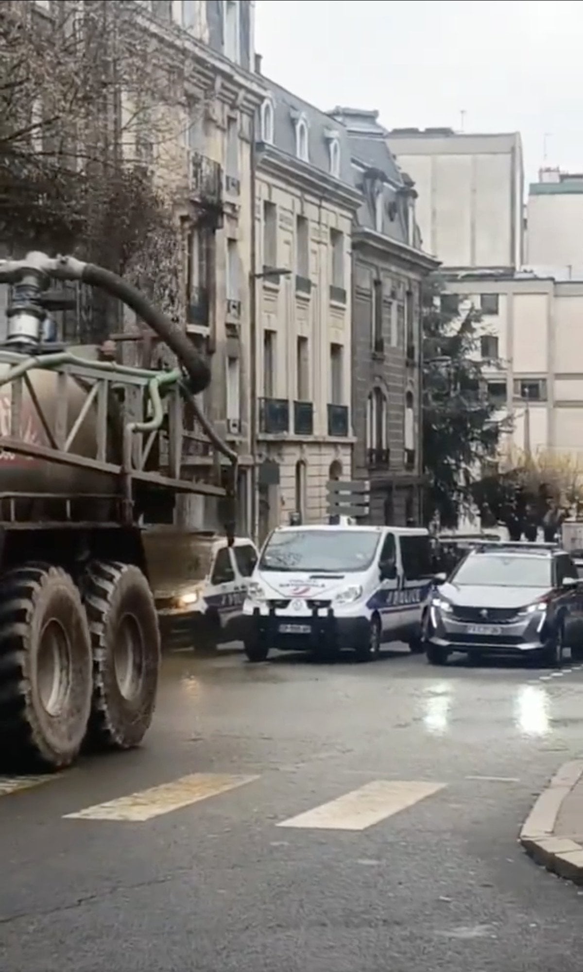 Çiftçilerden birinin yolu kapatan polis arabalarının üzerine aracından gübre sıktığı da kameralara yansıdı.