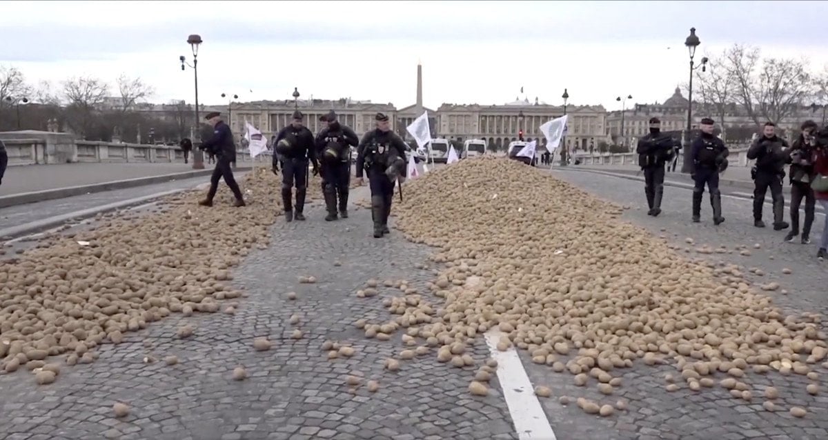 Fransa’daki Patates Üreticileri Ulusal Birliği’nden (UNPT) yapılan açıklamada, Ulusal Meclis’in karşısındaki Concorde Köprüsü’nün önünde patates dağıtıldığı belirtildi.