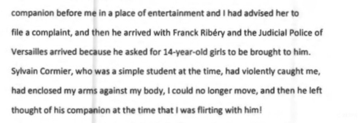 Aynı belgede, Franck Ribery’nin adli polis eşliğinde geldiği ve “kendisi için 14 yaşında kızlar getirilmesini istediği” yönünde bir ifade yer alıyor.