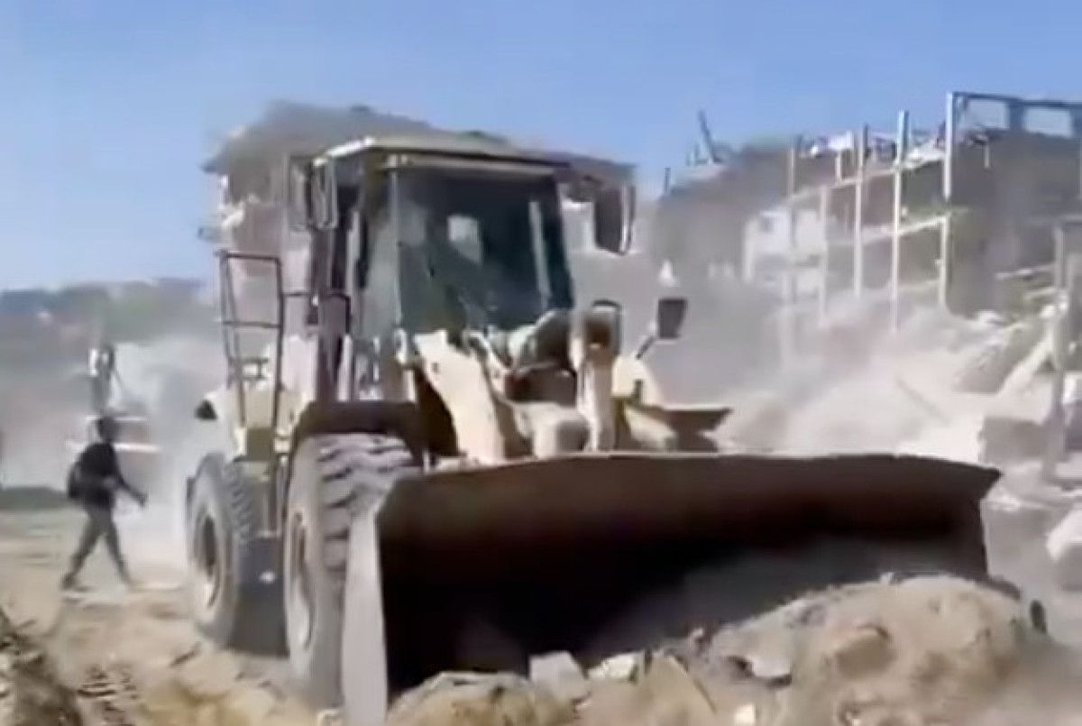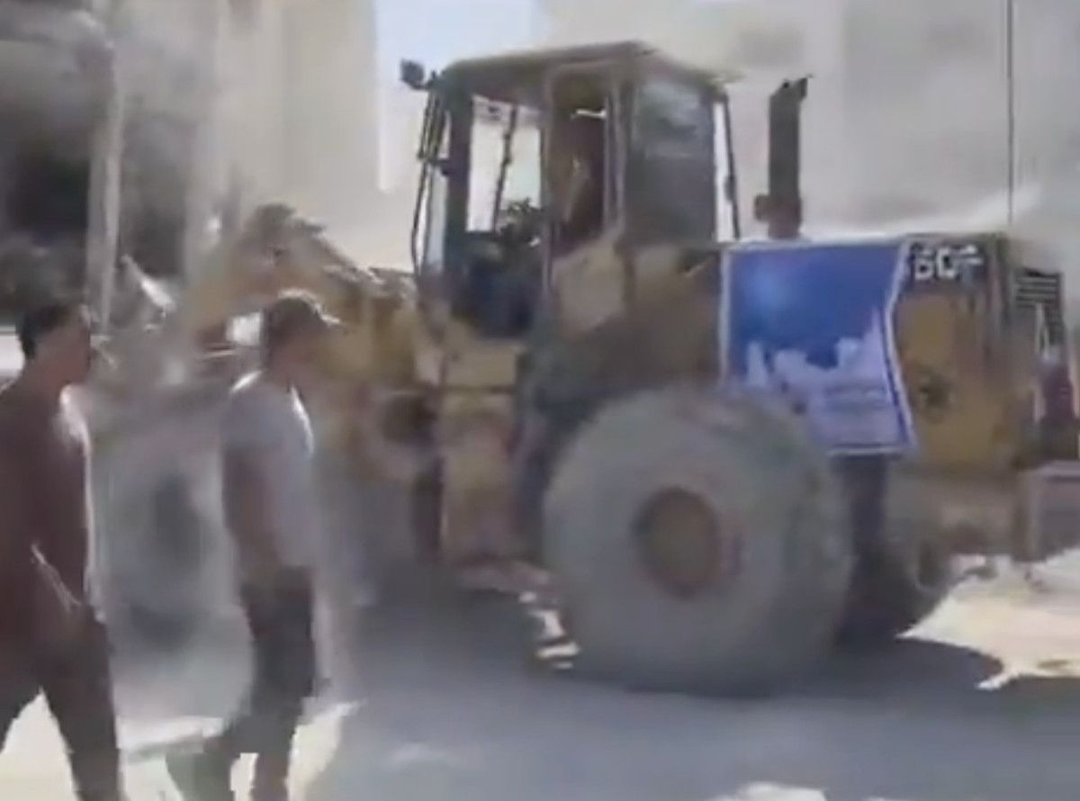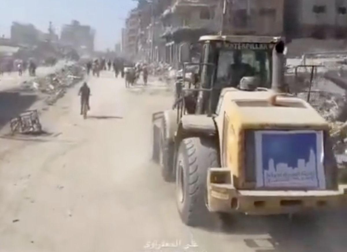 Gazze Belediyesi’ne ait araç ana caddeleri enkazdan temizlemek için harekete geçti.