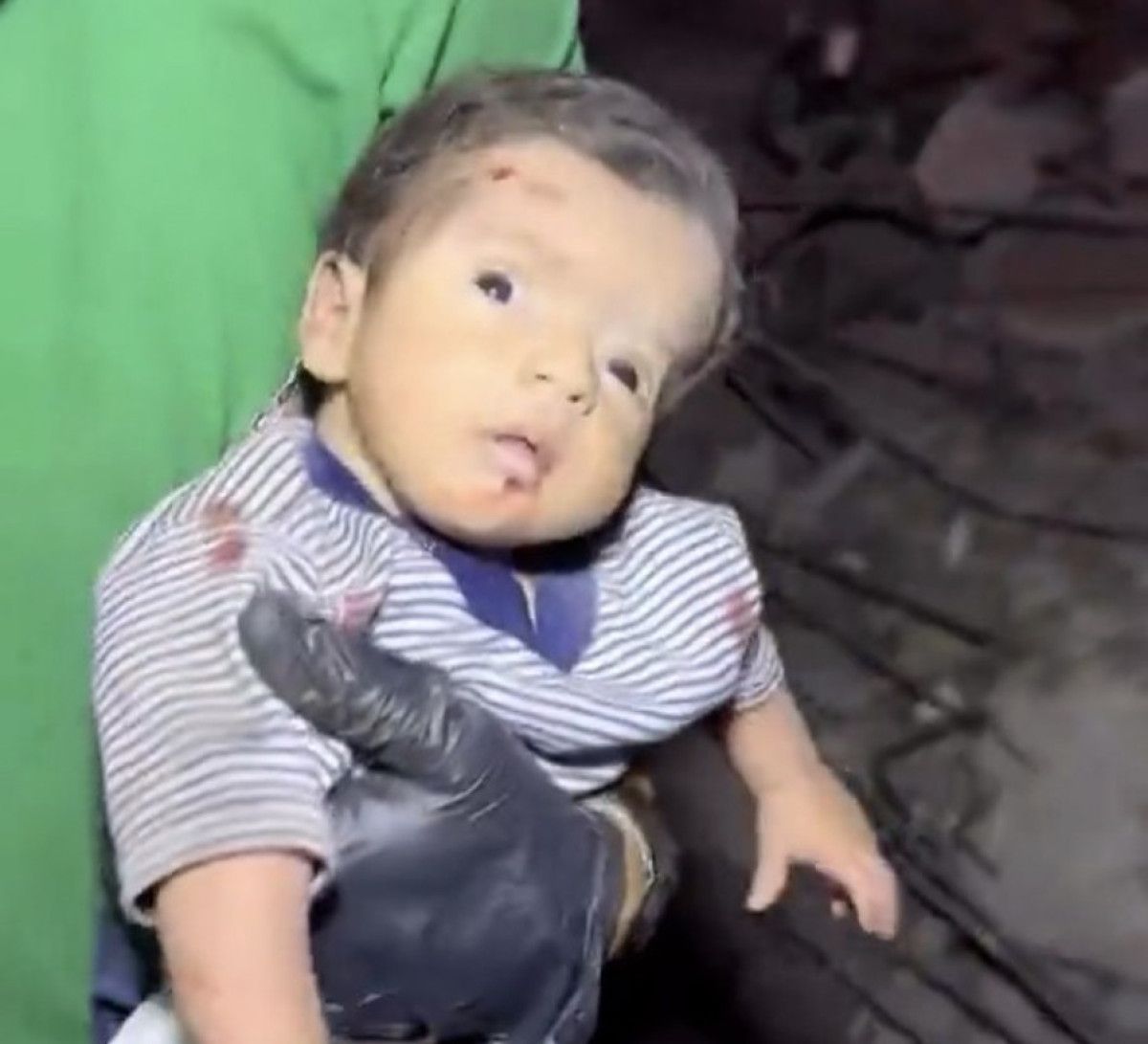 Büyük bir mücadeleyle enkaz altından kurtarılan Gazzeli bebek, yaşadığı şokun etkisiyle ağlayamadı.