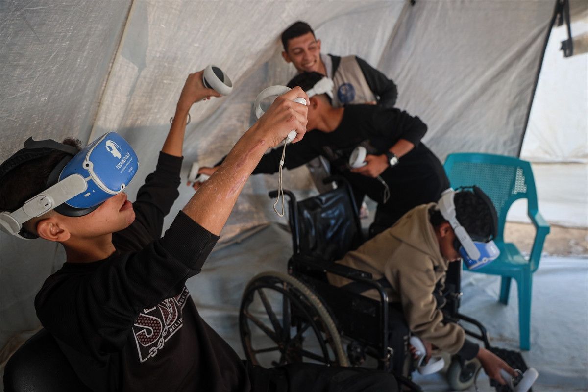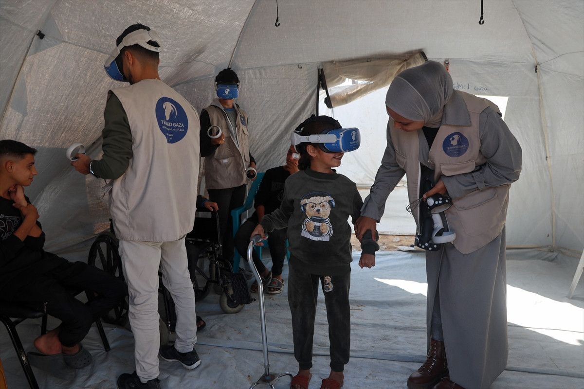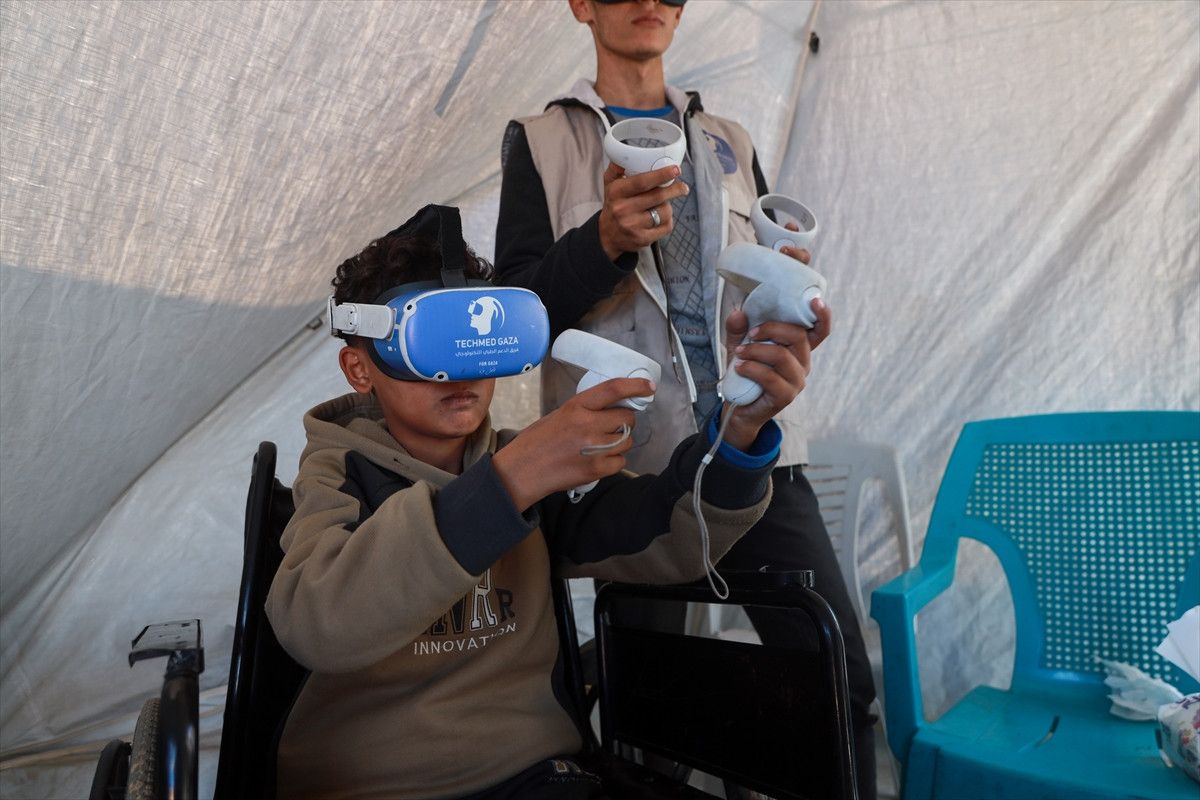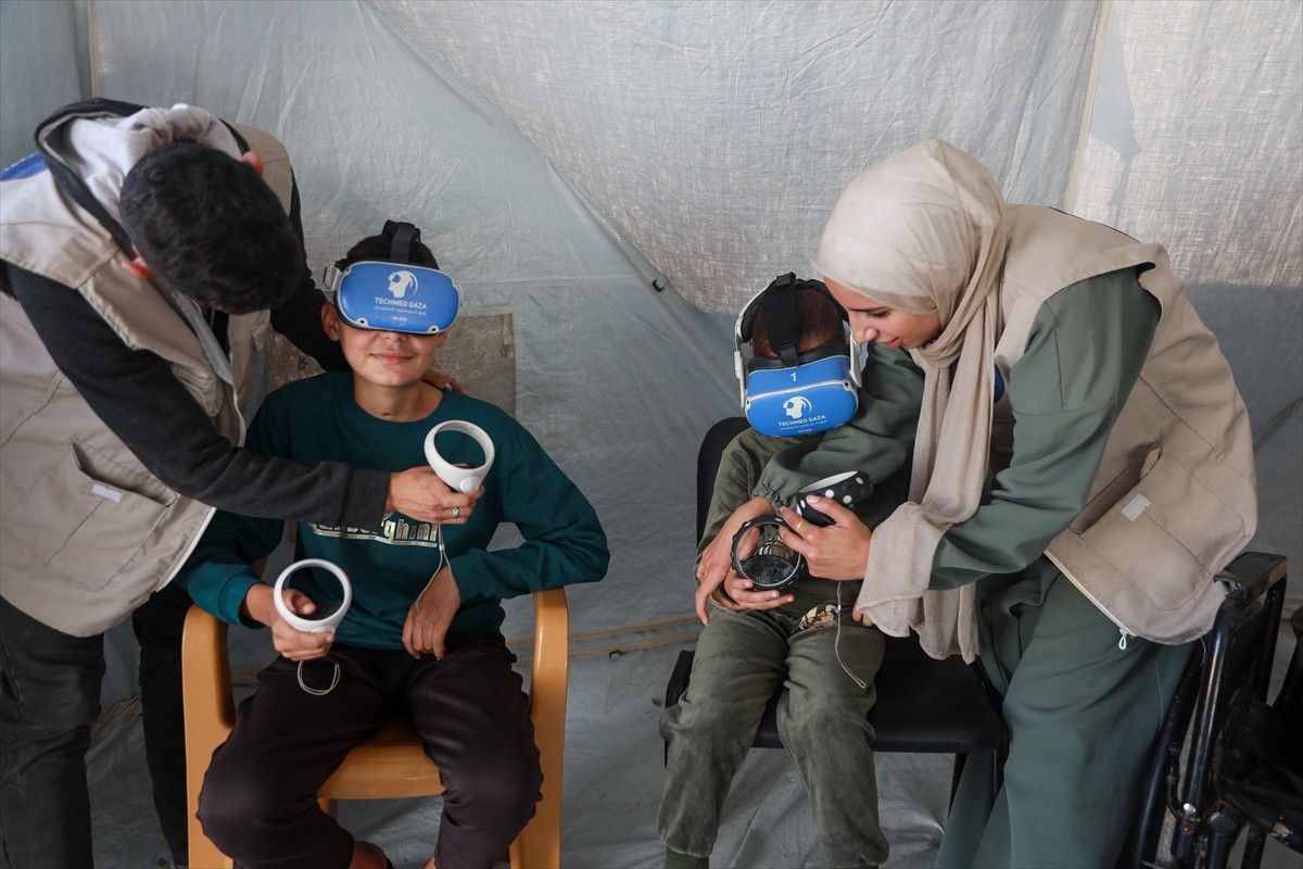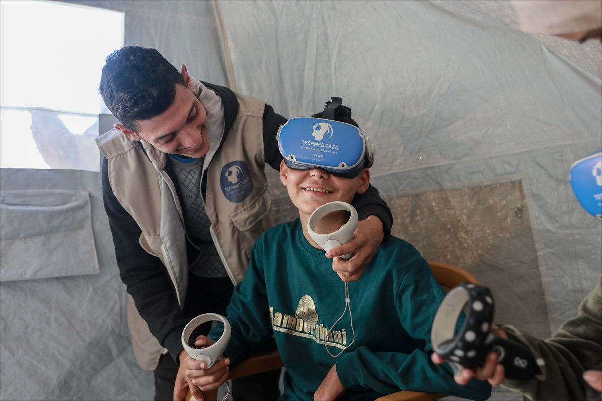 Tıbbi Teknoloji Destek Grubu (TECHMED GAZA), çocukların bu travmaların üstesinden gelebilmesi ve yeniden topluma entegre olabilmeleri için bir yıl önce Zevayide’de bir çadırda VR terapiye başladı.